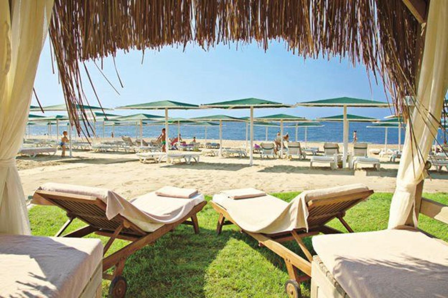 Собствен плаж с пясък/чакъл, Кей, Бар на плажа: безплатно, На плажа и при басейна: чадъри, шезлонги, матраци - безплатно, Плажни кърпи: безплатно.