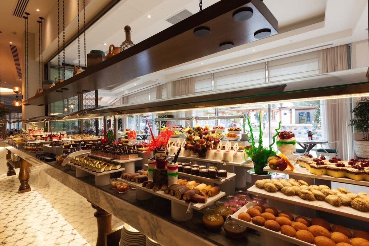 основен ресторант, диетично меню, 6 a la carte ресторанта (италиански, китайски, японски – такса за резервация, мексикански, рибен, турски – с предварителна резервация, по едно безплатно посещение на всеки ресторант), 7 бара (един от тях работи 24 часа), 5 открити басейна, закрит басейн, СПА център (платено), фризьорски салон (платено), търговска алея, пералня (платено), химическо чистене (платено), бизнес център, 4 конферентни зали (за 20-800 души)