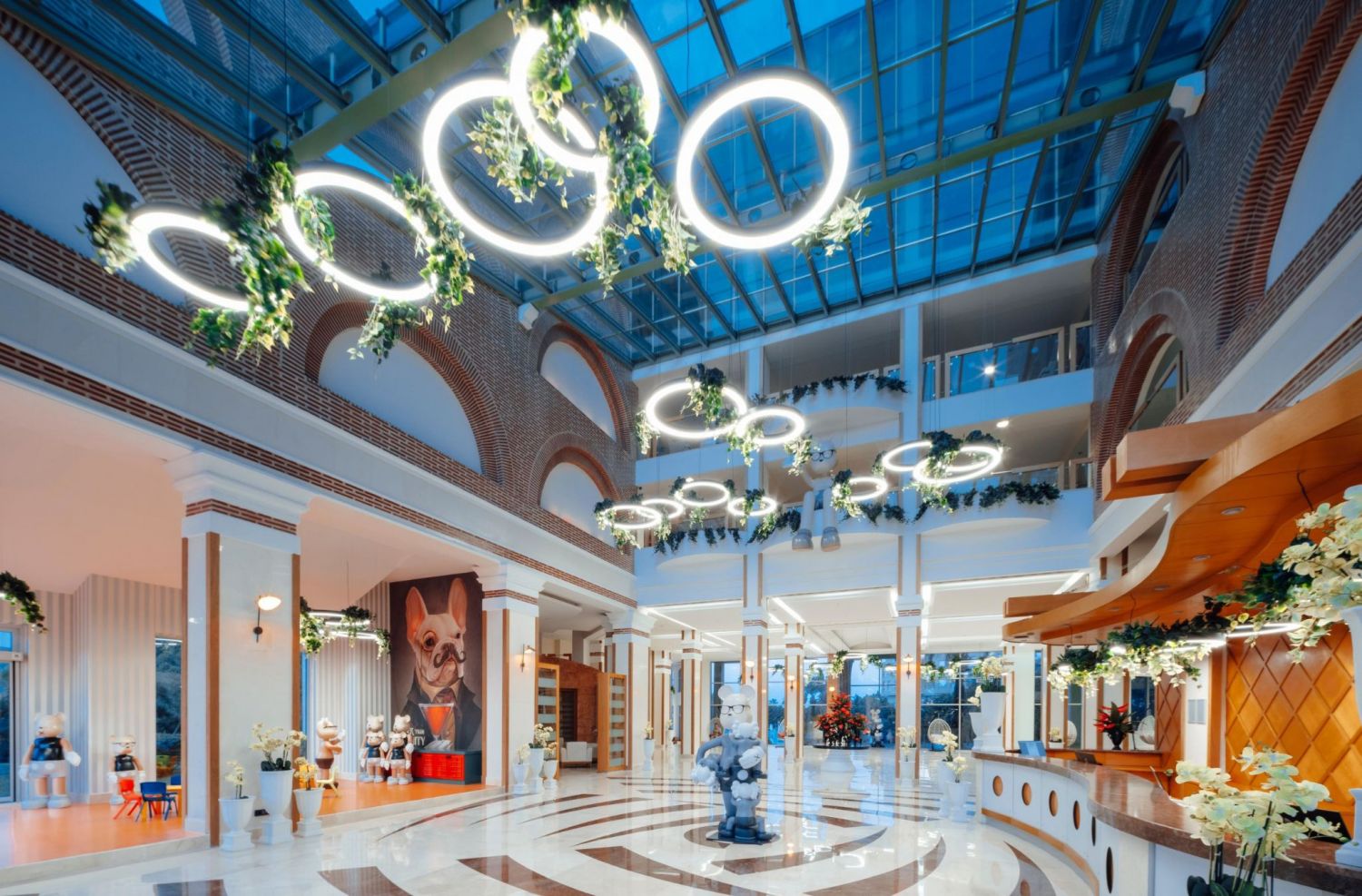 Основен ресторант, Lake Houses ресторант, 5 а-ла-карт ресторанта (турски, интернационален, мексикански, италиански, рибен - 1 безплатно посещение на един от ресторантите, при минимум 7 нощувки, с предварителна резервация), снек ресторант, гьозлеме, сладкарница, 8 бара, кафетерия, диско клуб, 5 открити и 1 закрит басейн, аквапарк с 14 пързалки, 5 конферентни зали, СПА център, магазини, паркинг.