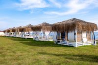 Собствен чакълест плаж. Чадъри, шезлонги и плажни кърпи на плажа и басейните - безплатно.