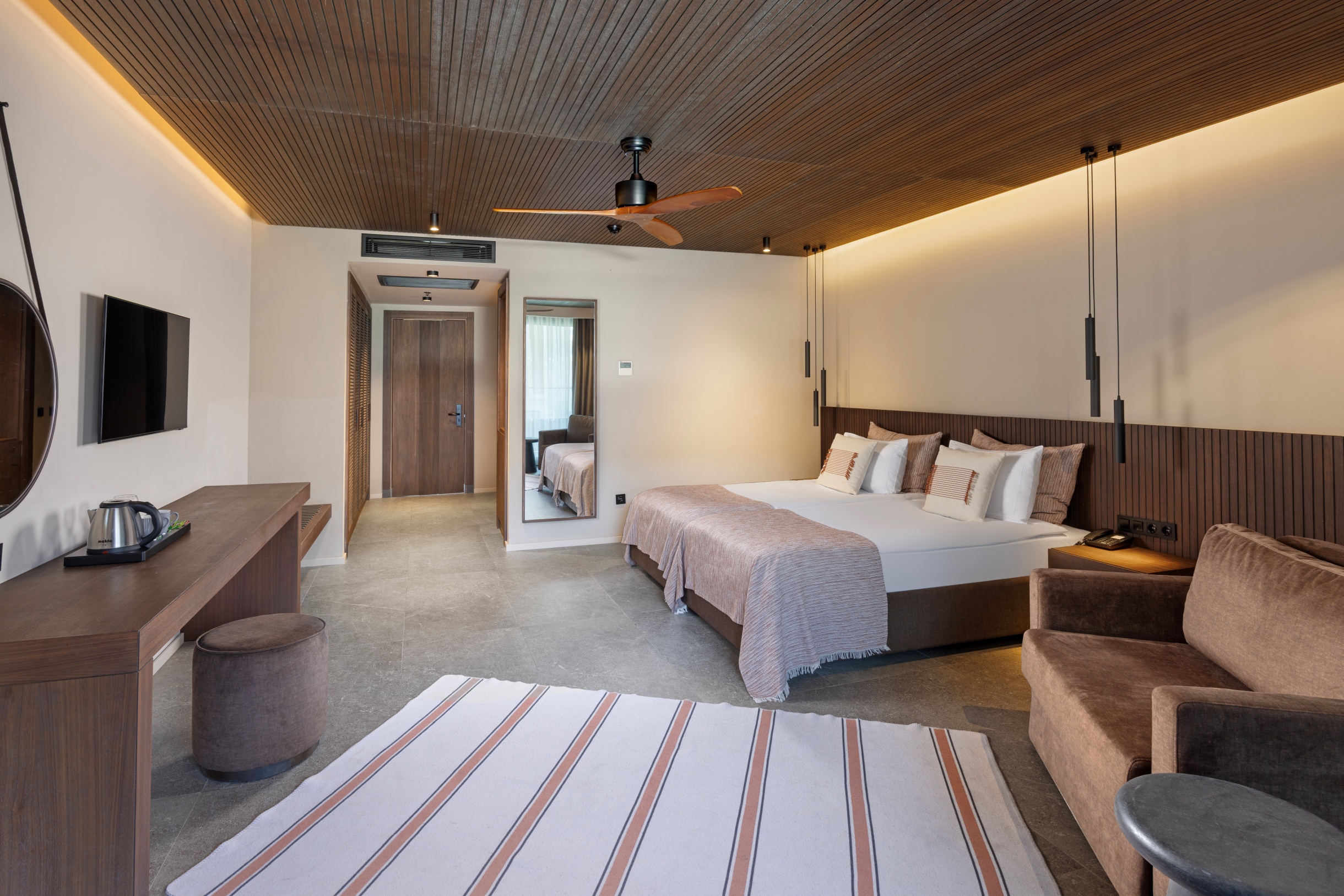 Всички стаи са оборудвани с климатик, телевизор, телефон, баня с душ, сешоар, халат/чехли, сет за чай/кафе, минибар (безплатен), сейф (безплатен).