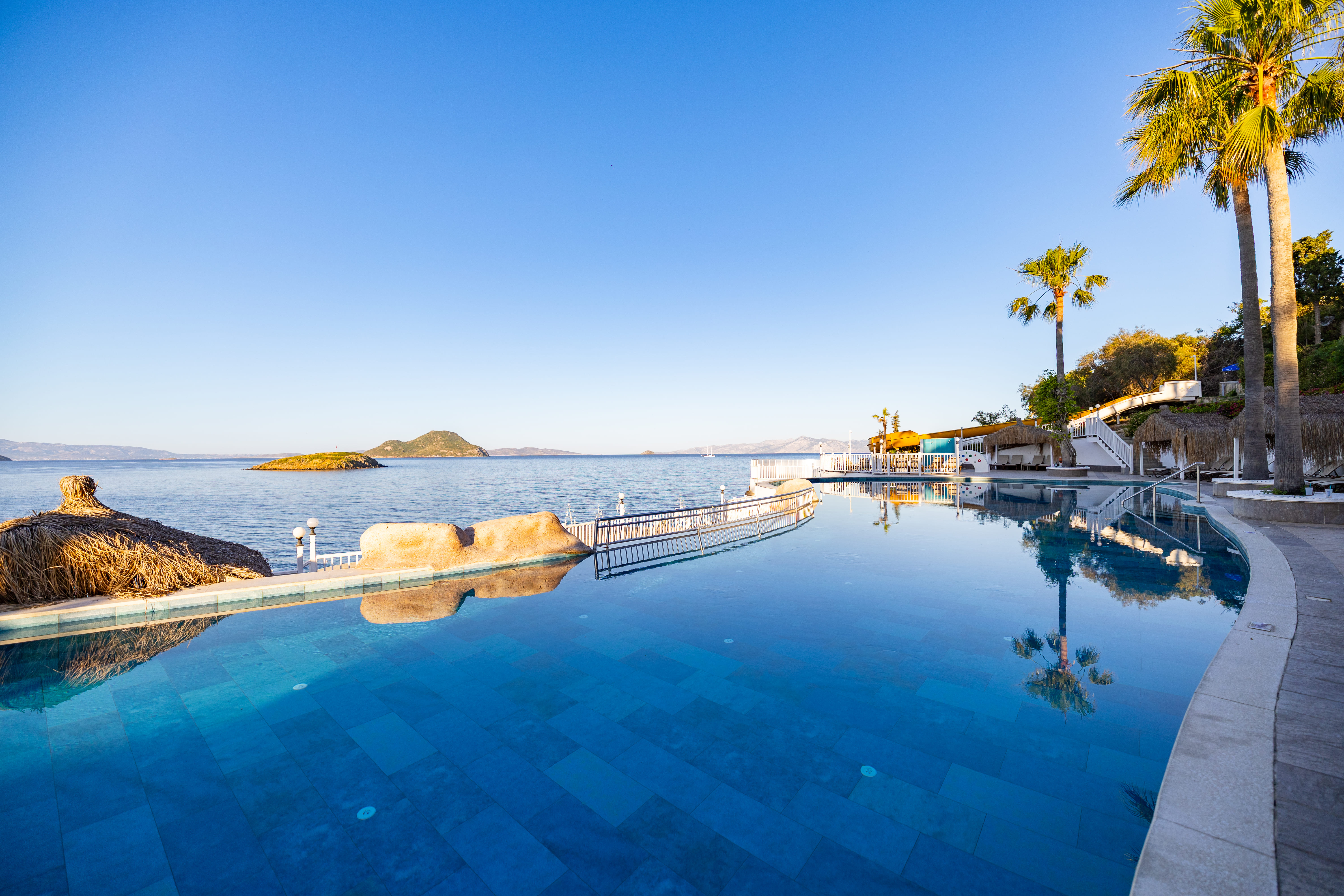 Намира се на 50 км от летище Бодрум, на 20 км от центъра на Бодрум, на 3 км от центъра на Тургутрейс, на брега на морето. Построен 1989 г., на обща площ от 36 000 м². Реновиран 2017 г.
