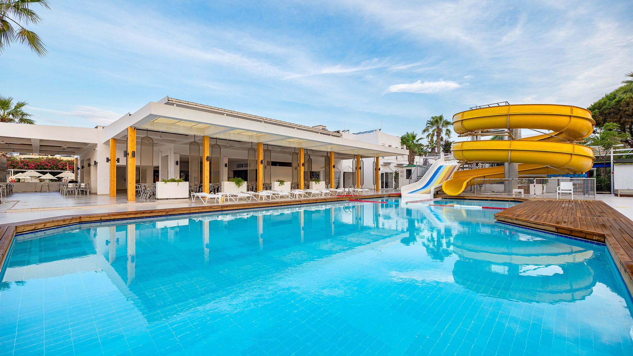 За децата: 2 водни пързалки, детска площадка, мини клуб.