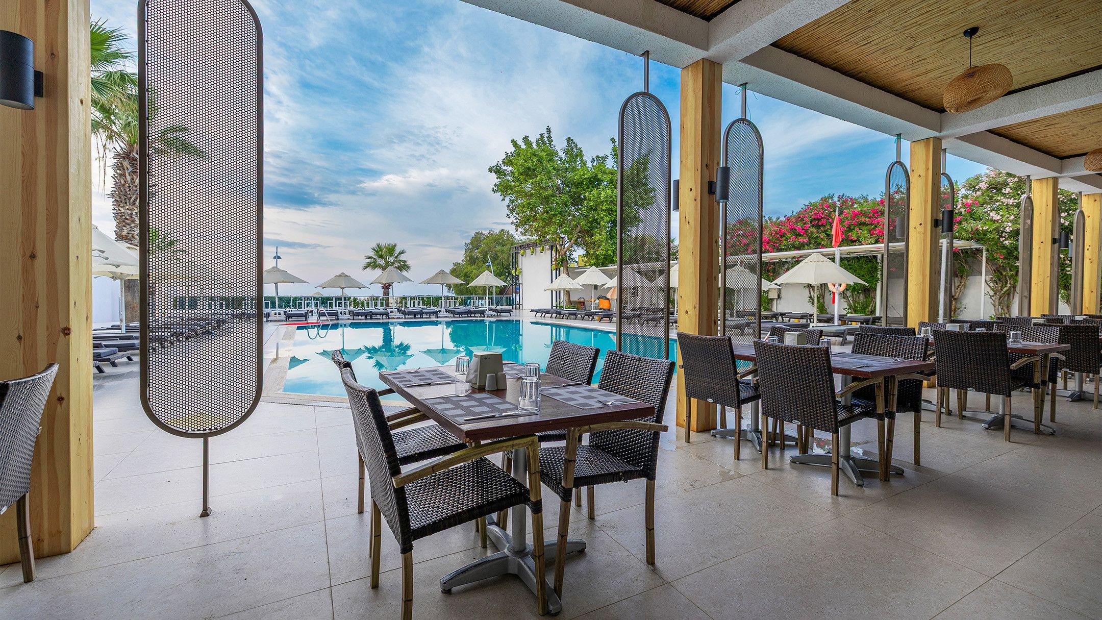 Основен ресторант, 1 сладкарница, 2 бара, 2 открити басейнa, СПА център, магазин, паркинг.