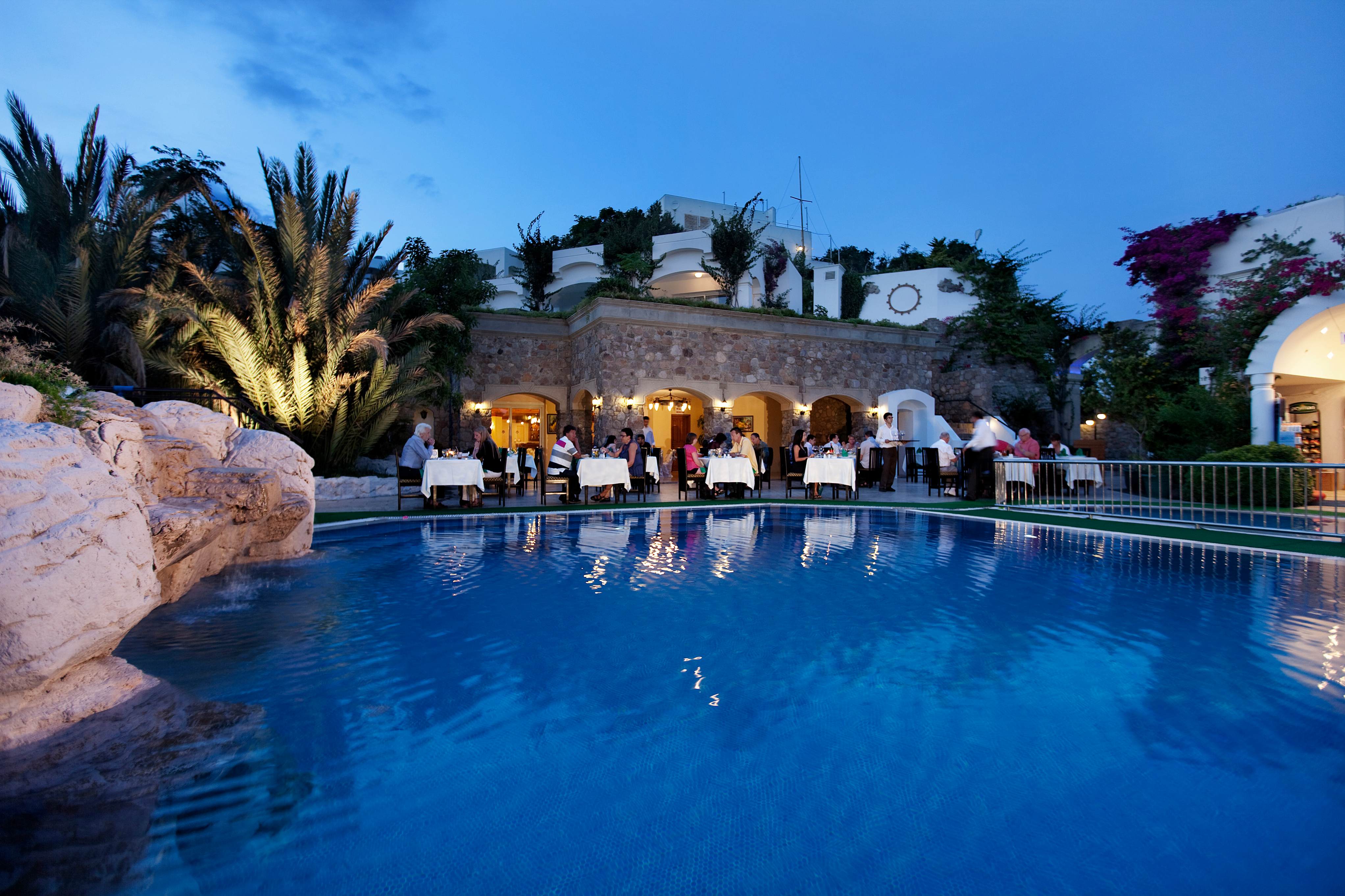 Основен ресторант с панорамна гледка към залива Гюмбет, 3 ресторантa а-ла-карт (рибен, италиански и турски - нужна е предварителна резервация - работят от 15.05 до 15.10), 6 бара (1 от тях е отворен 24 часа), дискотека, 1 открит басейн, закрит басейн, 3 конферентни зали.