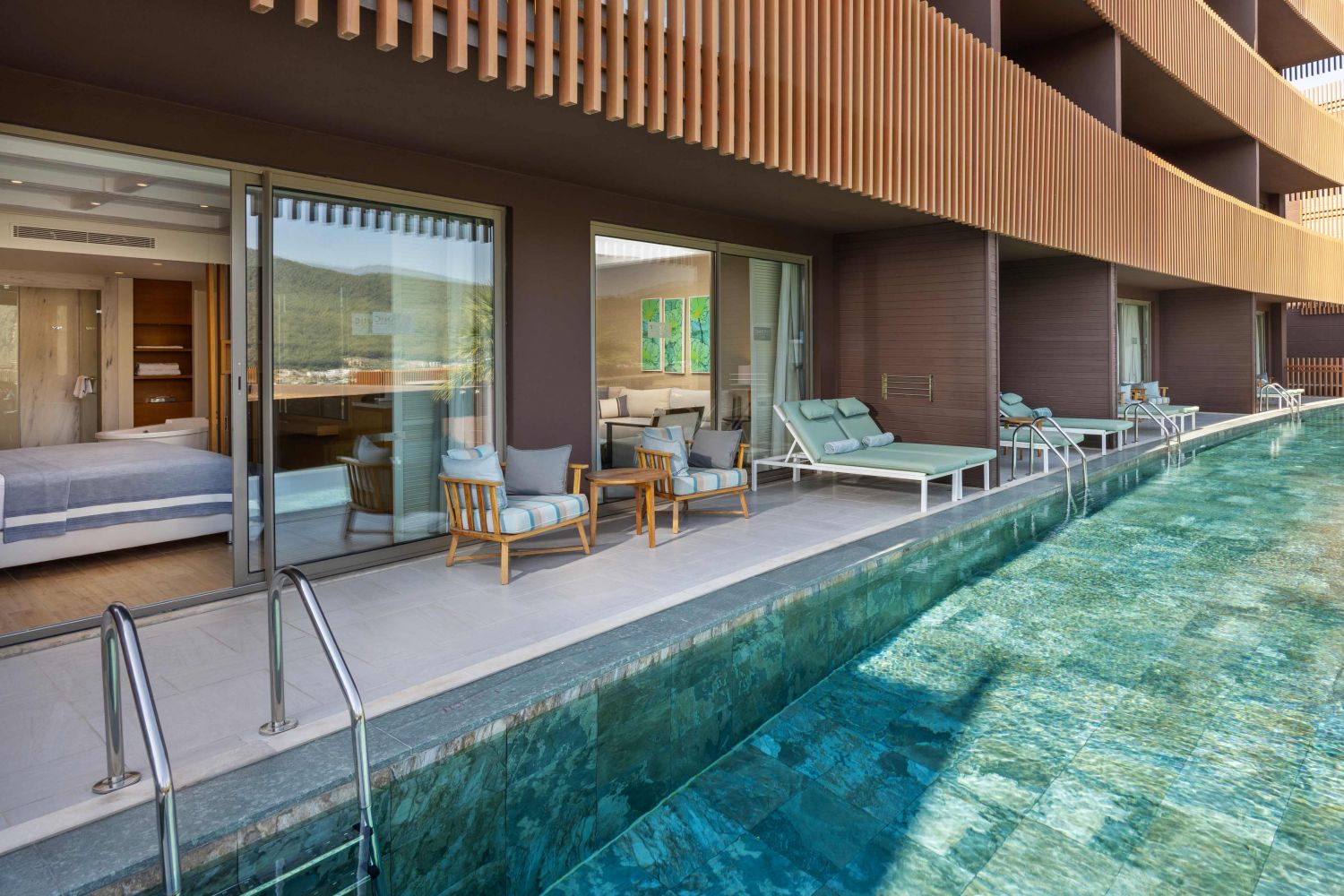 Хотелът разполага с общо 394 стаи, разпределени в 29 три-етажни блока, от които Sea view room (спалня, баня, с изглед към море, 39 - 47 м²), Superior room (спалня със зона за сядане, баня - 51 м²), Deluxe room (спалня със зона за сядане, баня - 80-85 м²), Family Room (1 спалня, отделна стая с 2 легла, 2 бани - 54 м²), Standard swim-up room (спалня, баня, с директен достъп до общ басейн, тераса - 39 м²), Superior swim-up room (спалня със зона за сядане, баня, с директен достъп до общ басейн, тераса с два шезлонга - 51 м²), Swim Up Family Room (2 спални, 2 бани, с директен достъп до общ басейн, тераса с два шезлонга - 54 м²), Deluxe Swim Up Room (спалня със зона за сядане, с директен достъп до общ басейн, тераса с два шезлонга, вана и отделна душ кабина - 80-85 м²), Exclusive Swim Up (с директен достъп до общ инфинити басейн, спалня, баня с вана и отделна душ кабина, гардеробна зона, тераса с два шезлонга и джакузи; премиум услуги, закуска в ресторантите Hasır и Pascarella, ексклузивен минибар, безплатен румсървис, безплатни перални услуги, при минимум 7 нощувки, частна плажна кабана, личен иконом (butler service), частно бъги с иконом, кожен ключодържател и плажна чанта - 90 м²), Family Suite (фамилна стая суит, хол, кухненски бокс, спалня, детска спалня с 2 единични легла, 2 отделни бани, тоалетна, кът за сядане, работно бюро и балкон - 90 м²), Family Suite Room Swim Up (фамилна стая суит, директен достъп до басейна, 1 спалня, 1 отделен хол, 2 бани, кухненски бокс - 90 м²), Exclusive Villa (вила на 2 етажа, на 1 етаж има всекидневна, спалня и баня, 2 етаж две спални и две бани, 1 тераса и собствен басейн, всички спални имат балкон, по-богато разнообразие в мини бара, иконом), Superior Villa (3-етажна вила, кухня, всекидневна, сауна и баня на първия етаж, 4 спални на 2 етаж, тераси и собствен басейн, джакузи, маса за вечеря, богато разнообразие в мини бара, иконом - 300 м²), Presidental Villa (3-етажна вила, разположена в градините на хотела, кухня, всекидневна, хамам, сауна на първия етаж, 6 спални, турска баня, собствен басейн, сауна, асансьор, иконом - 530 м²).