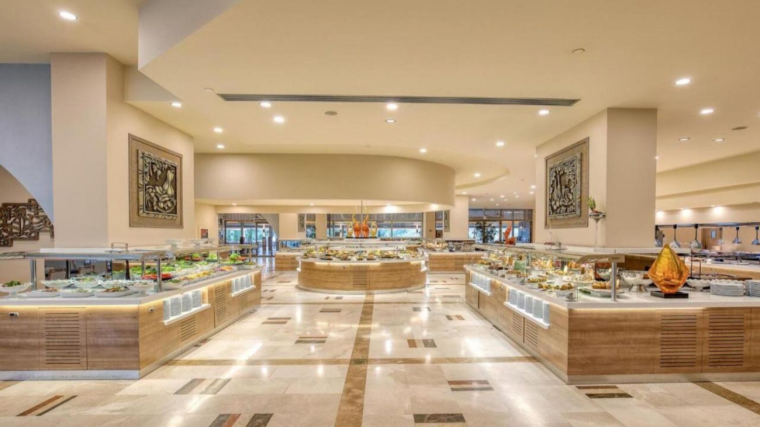 Основен ресторант PINA с диетичен, вегетариански и детски кът; 5 а-ла-карт ресторанта (турски MARDIN, гръцки MYLOS, средиземноморски VIRA, италиански PULCINELLA, тепаняки SAKURA - с предварителна резервация/ 1 безплатно посощение на 1 от ресторантите при минимум 7 нощувки, с изключение на SAKURA Tappanyaki Restaurant; 4 снек ресторанта (Pina, Mylos, Vira, Sunrise); 12 бара (Sunset Lobby Bar, Sunris Bar, Vira Event Bar, Pool bar, Sisha Lounge, Mylos Bar, Sakura Bar, Pulcinella Bar, Club Azure/ Beach Bar, Disco Bar), Starbucks, сладкарница, 2 открити басейна, 1 закрит басейн, аква парк с 10 водни пързалки, амфитеатър, СПА център, дискотека, магазини, 9 конферентни зали, паркинг. На плажа има общо 16 кабани, които могат да се наемат срещу допълнително заплащане, с включен сервиз.