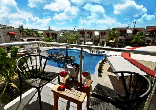 Намира се на 36 км от летище Бодрум, на 1 км от центъра на Бодрум, на 1 км от центъра на Гюмбет, на втора линия. Построен 2006 г., на обща площ от 4000 м².