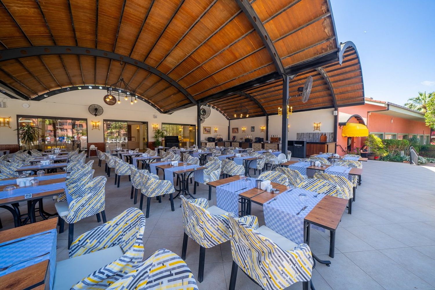 Хотелът разполага с 206 стаи, външен басейн, релакс басейн, детски басейн, вътрешен басейн, основен ресторанта, 3 бара, дискотека, билярд (срещу депозит), дартс, тенис на маса (срещу депозит), тенис на корт (срещу депозит), мини клуб (4-12), анимация. Услуги предлагани в хотела безплатно: турска баня, сауна, фитнес, дискотека. Услуги предлагани в хотела срещу заплащане: масаж, спа център, фризьор, парасайлинг, детегледачка, пералня, осветление за тенис корт, лекар (на повикване). ПЛАЖ: Собствен – пясъчен, на 1 км. от хотела, безплатен шатъл до плажа няколко пъти на ден. Чадъри, шезлонги, матраци на плажа и при басейна – безплатно.
