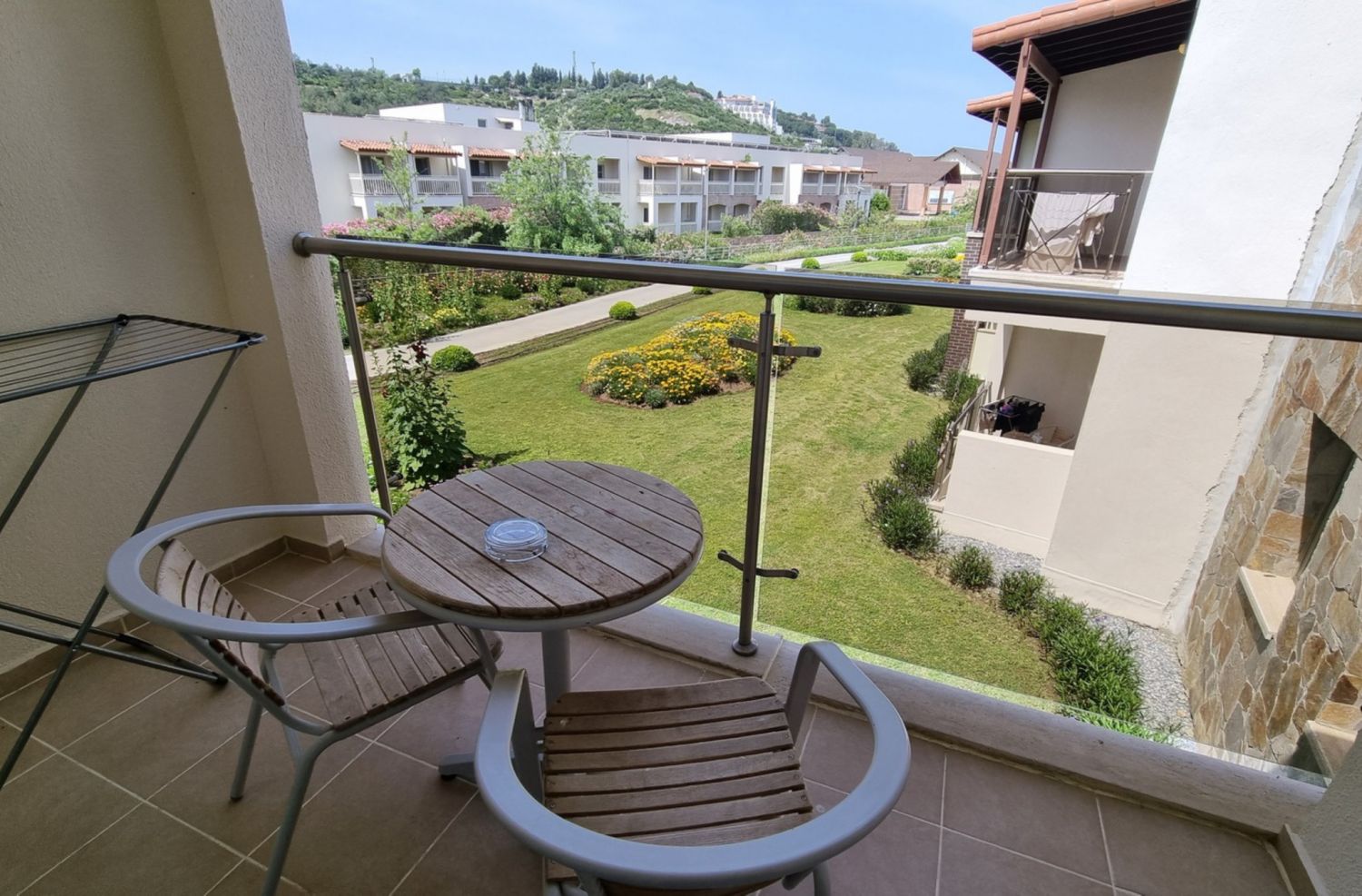 Собствен, пясъчен с дължина 300 м, притежаващ сертификат "Син флаг" и кей със 150 м дължина. Чадъри, шезлонги, матраци и плажни кърпи на плажа и при басейна - безплатно.