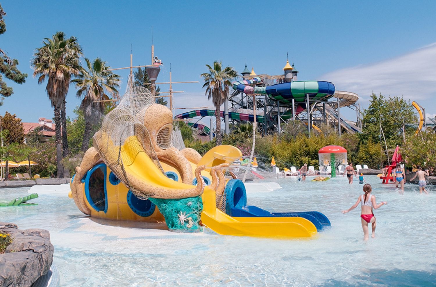 На разположение на гостите на хотела е аквапарк, който разполага с 31 водни пързалки, от които няколко екстремни (Super combo,Screamer, Crazy Raft, Boomerango, Space Bowl и др.), басейн със 7 вида изкуствени вълни, 400 метра дълга Lazy River, Lily Pad - място за срещи на родители и техните деца, а за по-малките деца са налични: голяма детска зона с пиратски кораб с 6 пързалки и интерактивни играчки, комплекс от пързалки „Подводен октопод“, жабешка пързалка и разбития кораб. Основни правила за ползване на Аквапарка: Не се препоръчва за хора с физически увреждания, сърдечни оплаквания и бременни жени. Деца на възраст под 12 години трябва да бъдат придружени от възрастен. Не се допуска използването на някои от пързалките от деца с височина под 120 см. Всички деца под 3-годишна възраст се изискват да носят "swim" памперси. Консумацията на хранa и напитки на теритотията на аквапарка е срещу заплащане.
