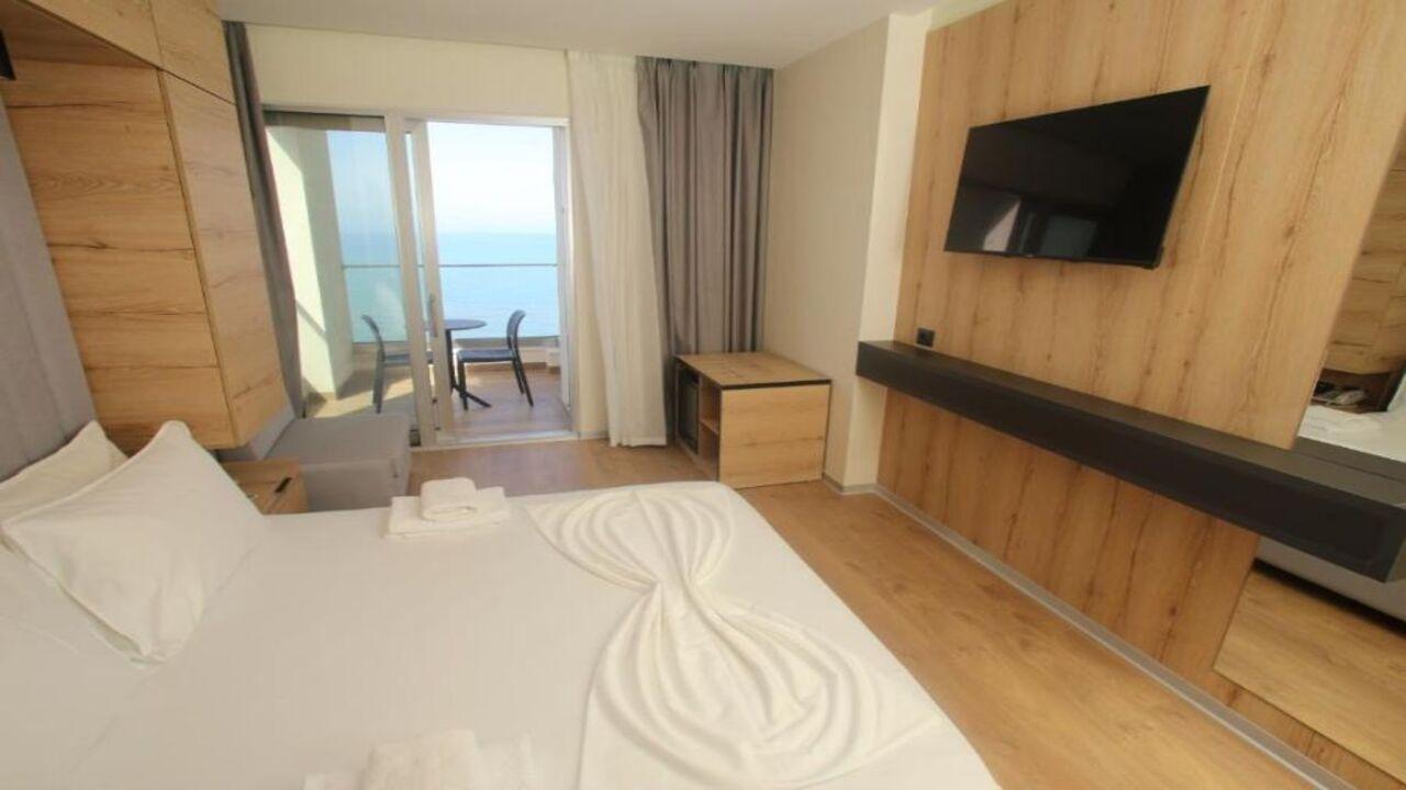 Хотелът предлага различни типове стаи, включително двойни и тройни стаи с изглед към морето или планината. Всяка стая е оборудвана с климатик, телевизор с плосък екран, минибар, сейф и балкон. Баните разполагат с душ кабина, сешоар и безплатни тоалетни принадлежности. Стаите са просторни и светли, подходящи както за двойки, така и за семейства.