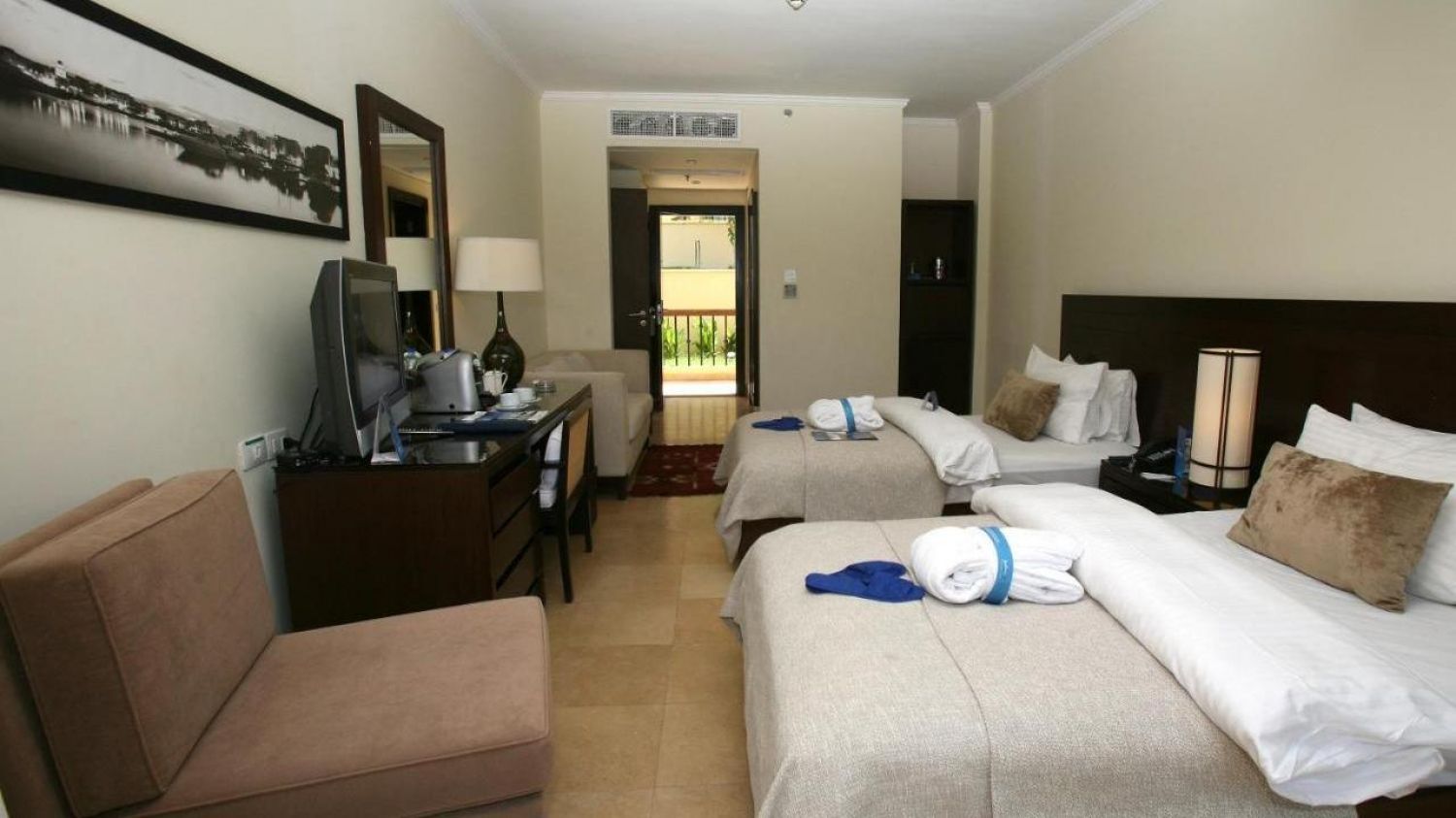 Стаите в Tala Bay Resort Aqaba разполагат с големи прозорци, водещи към самостоятелен балкон, а от някои се открива изглед към Червено море. Всички стаи предлагат луксозни легла и спално бельо, както и телевизор с плосък екран.