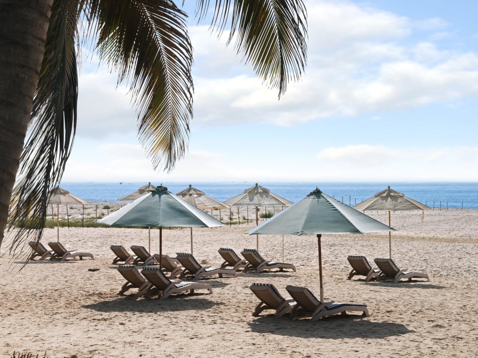Собствен пясъчен плаж. Чадъри, шезлонги и плажни кърпи на плажа и басейна - безплатно.