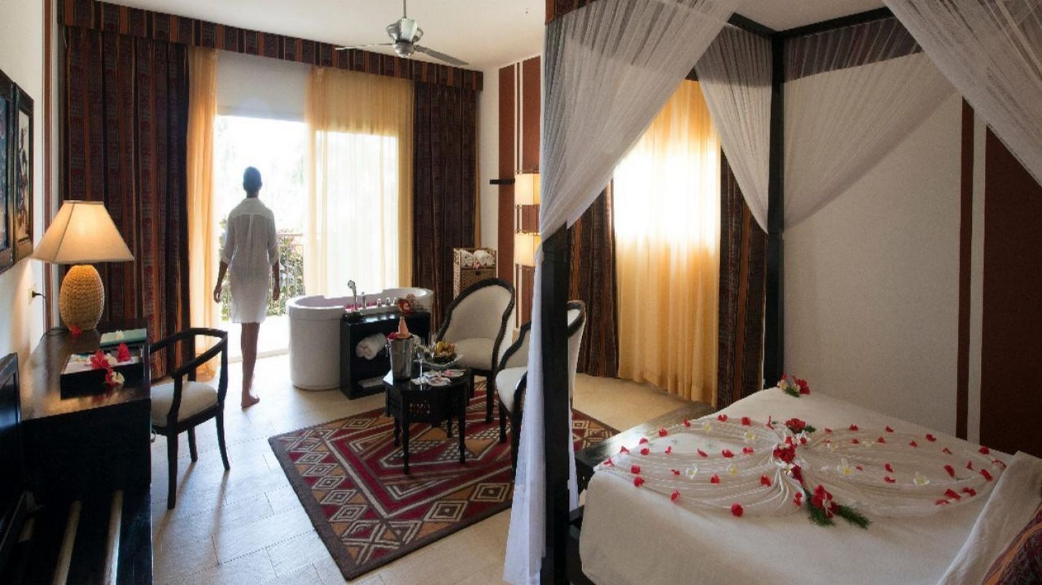 Комплекс разполага с 207 стаи и 27 вили. Делукс двойните стаи са обзаведени в романтичен африкански стил. Гостите на хотела ще се насладят на големите легла с балдахин, на банята с душ кабина, а от обзаведения балкон ще могат да се насладят на гледка към тропическата градина. Този тип стаи са с площ от 37 кв.м и са с макс. капацитет до 2 души. Някои от стаите разполагат и с междинна врата, което ги прави идеалният избор за семейства. Този тип стаи са оборудвани с: