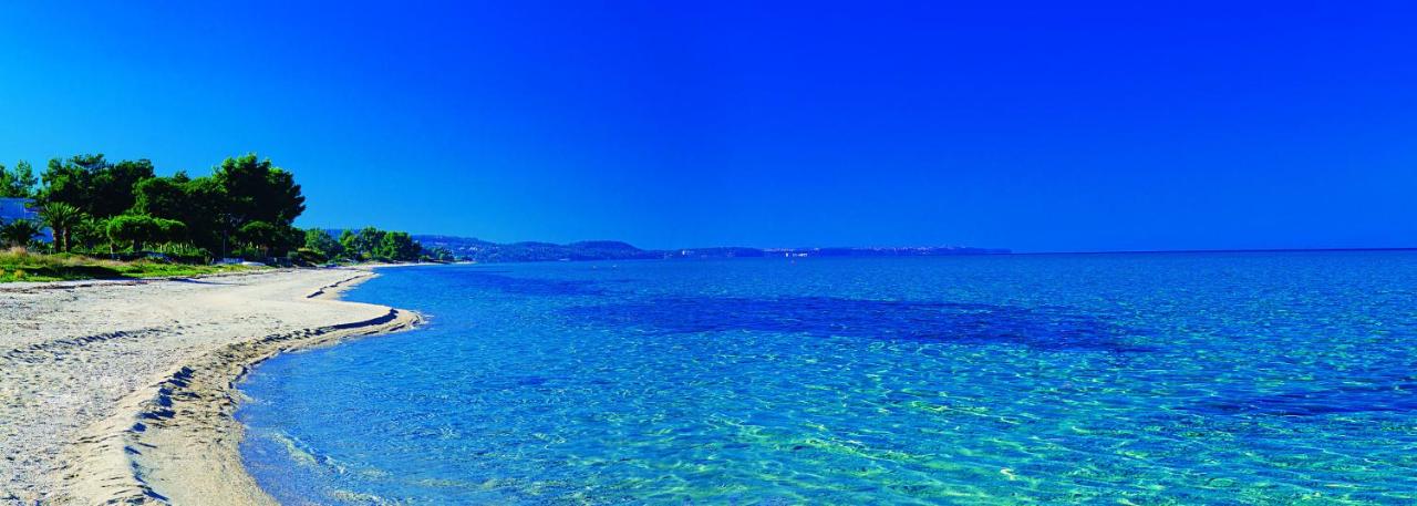 Хотелът е разположен на п-в Касандра, в селището Ханиоти, на 99 км от летището в Солун. Хотелът е построен на брега на морето, заобиколен от богата растителност и борова гора. Разполага с 86 стаи с гледка към морето или боровата гора. От тях 67 студиа по 22 кв.м. за максимум 4 човека - обща стая с кухненски бокс и 16 апартамента по 35 кв.м за максимум 4 човека с две отделни спални , свързани с междинна врата и кухненски бокс. Почистване на стаите - ежедневно, смяна на спално бельо - 2 пъти в седмицата.