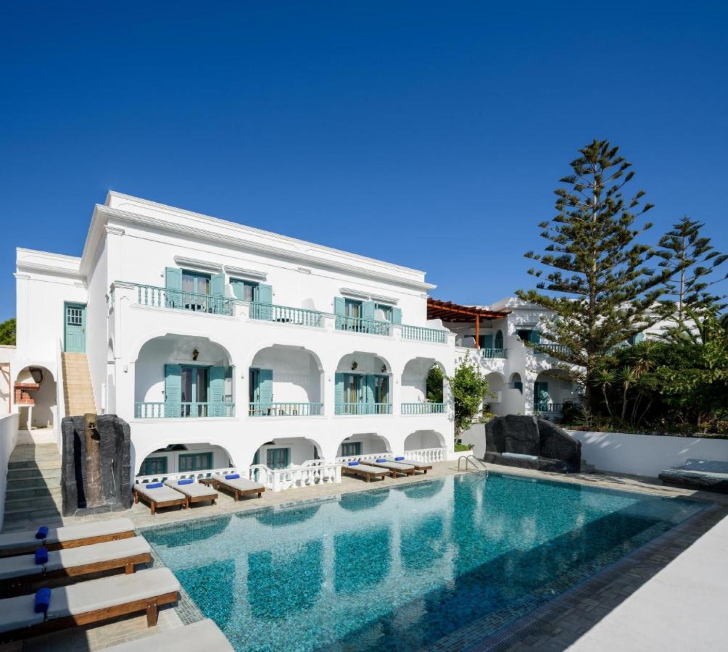 Хотелът се намира на 3 км. от летището на Санторини, на 8 км. от столицата Фира, в центъра на Камари, на 50 м. от брега на морето.