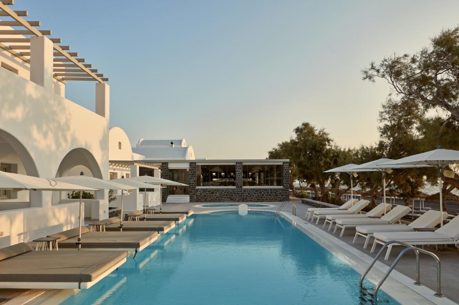 Costa Grand Resort & Spa се намира в Камари, на собствения си плаж с черен пясък. Летище Санторини (Тѝра) се намира на 4 км.