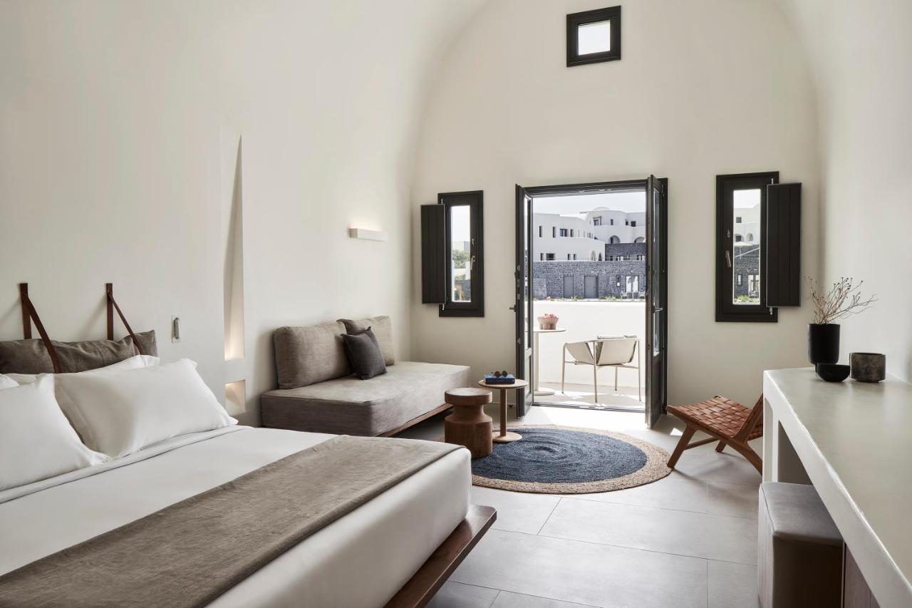 Orama Hotel & Spa предлага 100 супериорни стаи и апартаменти със стил на декорация, който съчетава линиите на санторинската архитектура с минималистични детайли. Всички сгради са на 2 етажа.