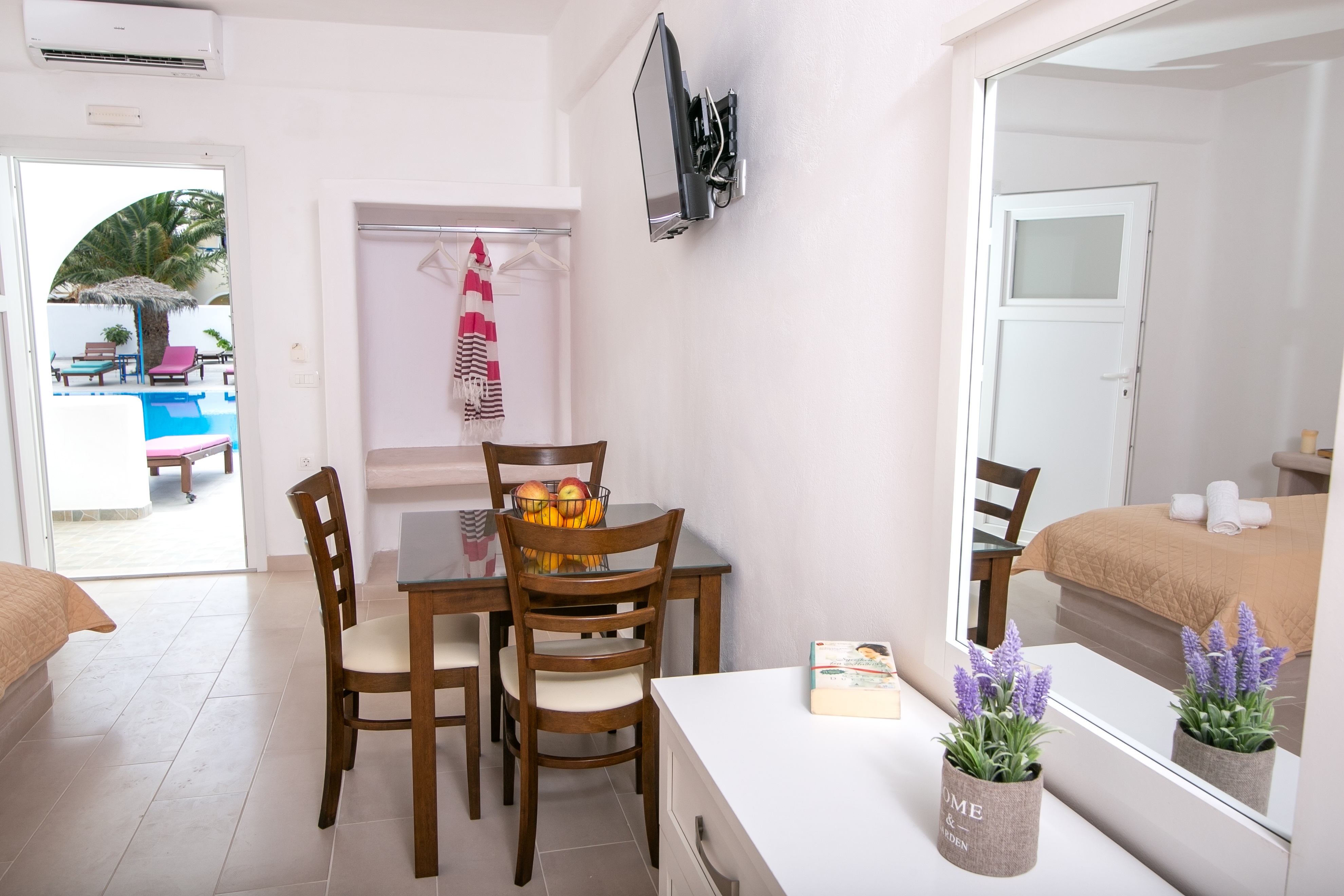 Хотел Gardenia 3* се намира в курорта Периса, само на 150 метра от оживената крайбрежна и черният пясъчен плаж. Летището на Санторини е на 13 км, а централното пристанище Атиниос - на 10 км. Столицата Фира е на 10 км.