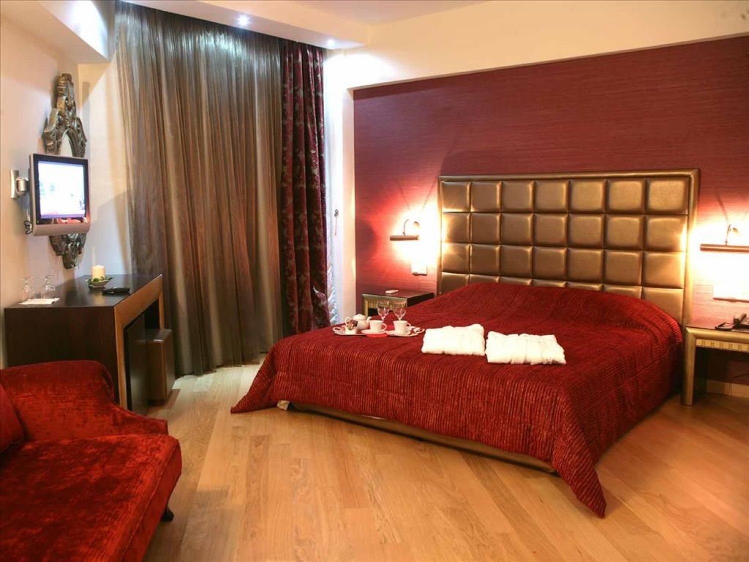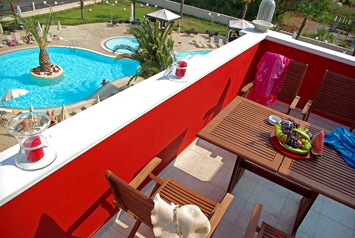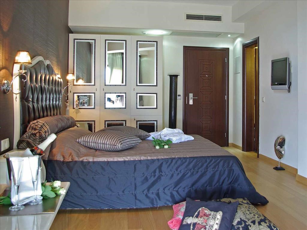 Grand Suite Две стаи - хол и спалня, баня (хидромасажна вана), голяма обзаведена тераса с шезлонги, 2 телевизора, бюро. Стаи за непушачи.