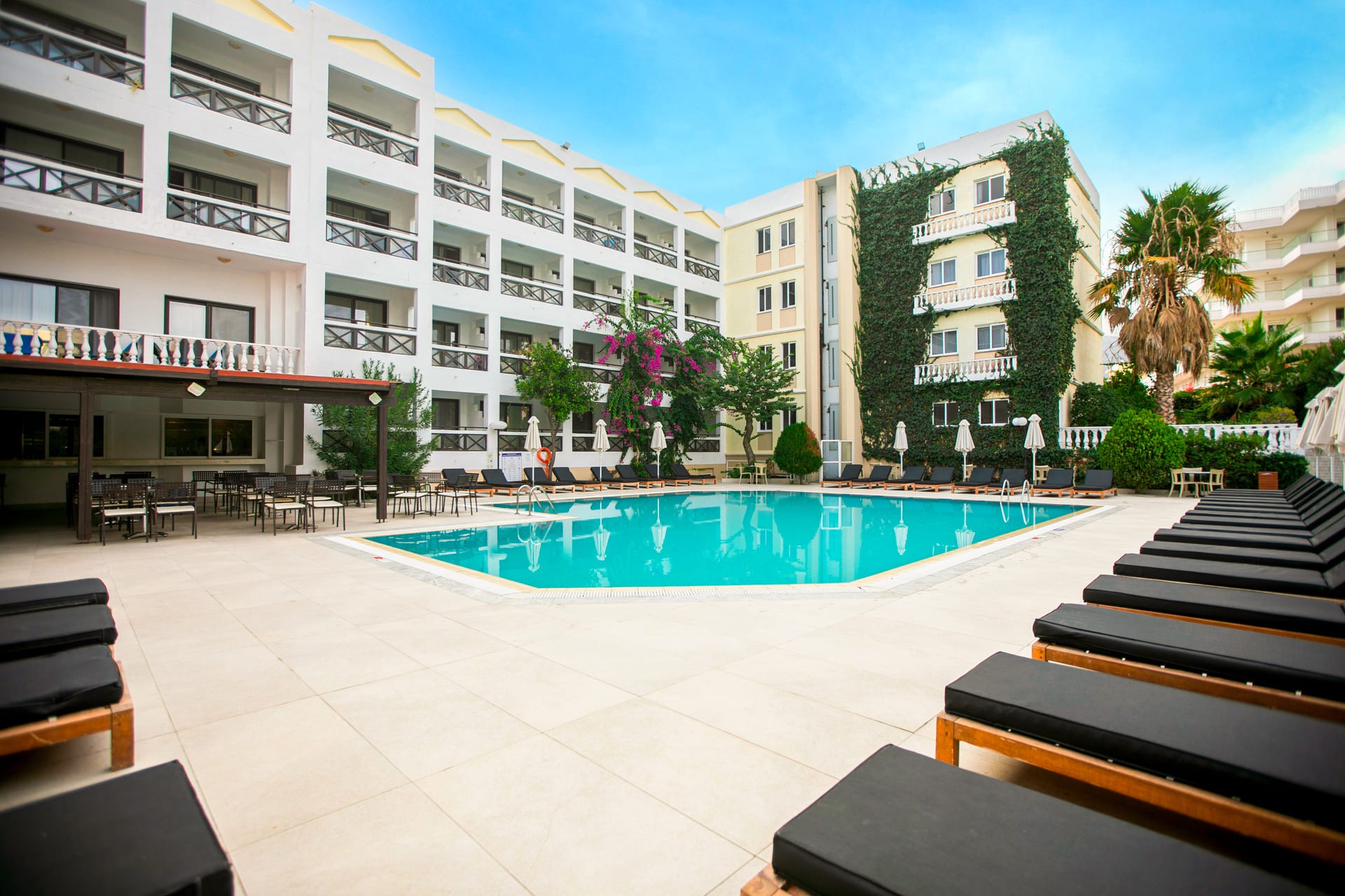 Хотелът разполага общо с 200 стаи. Състои се от основна 4 –етажна сграда и допълнителна сграда (Annex).Standard room (в основната сграда, макс. 3 чов., 25–28 м2); standard room SSV (с частичен изглед вид на морето, макс. 3 чов., 25–28 м2); annex room ( макс. 3 чов., 25–28 м2). Всички са оборудвани с климатик, телефон, телевизор, сейф (платен), баня с вана/душ, сешоар, мини- бар, балкон.
