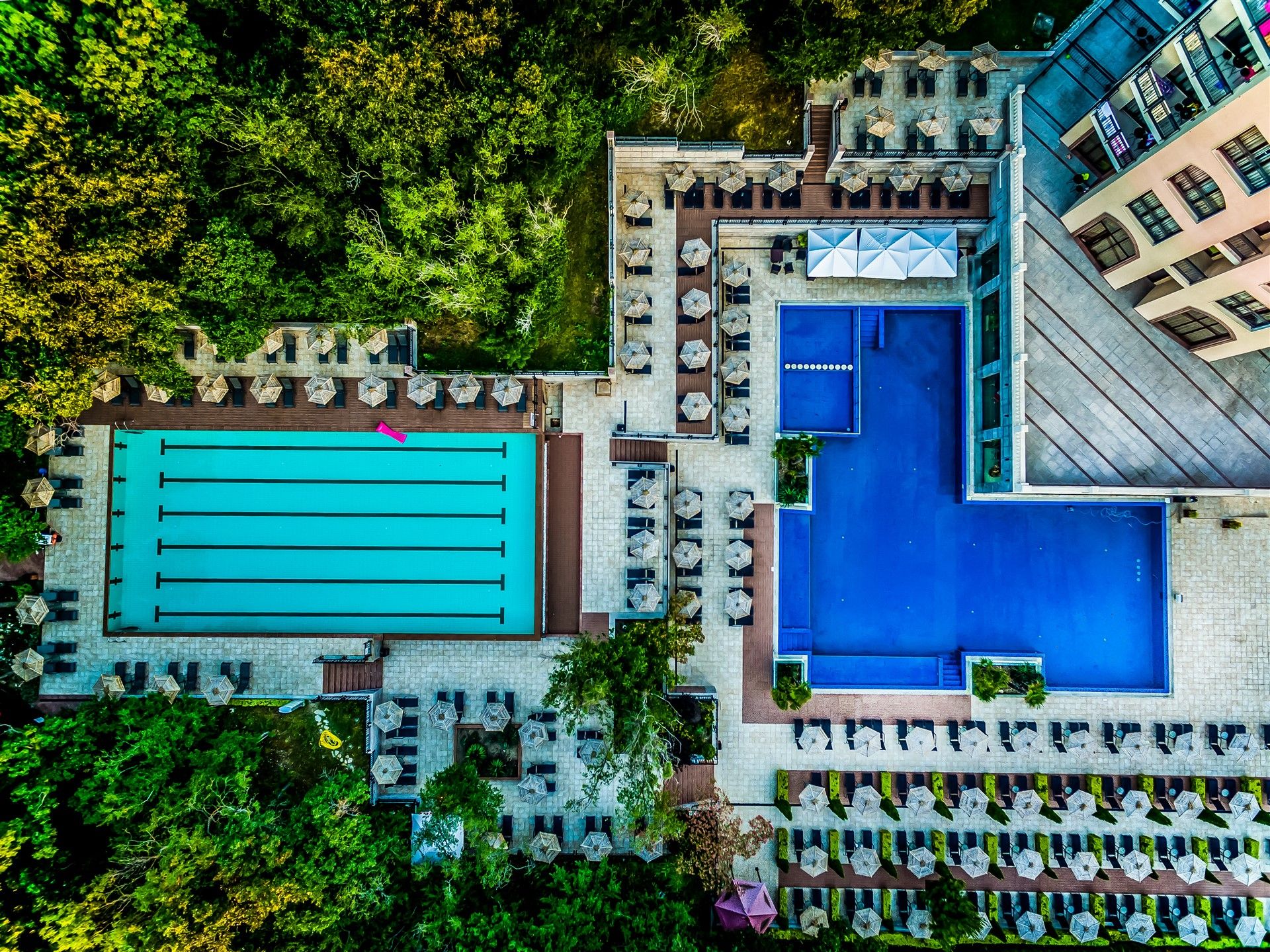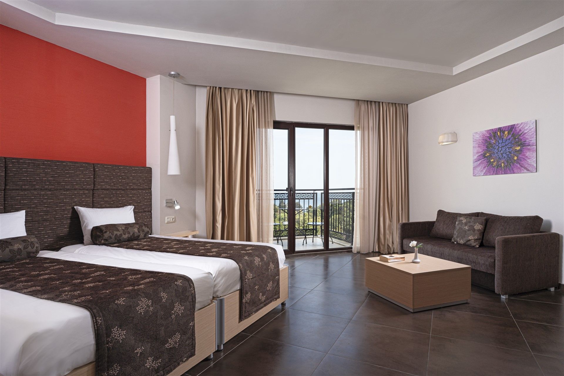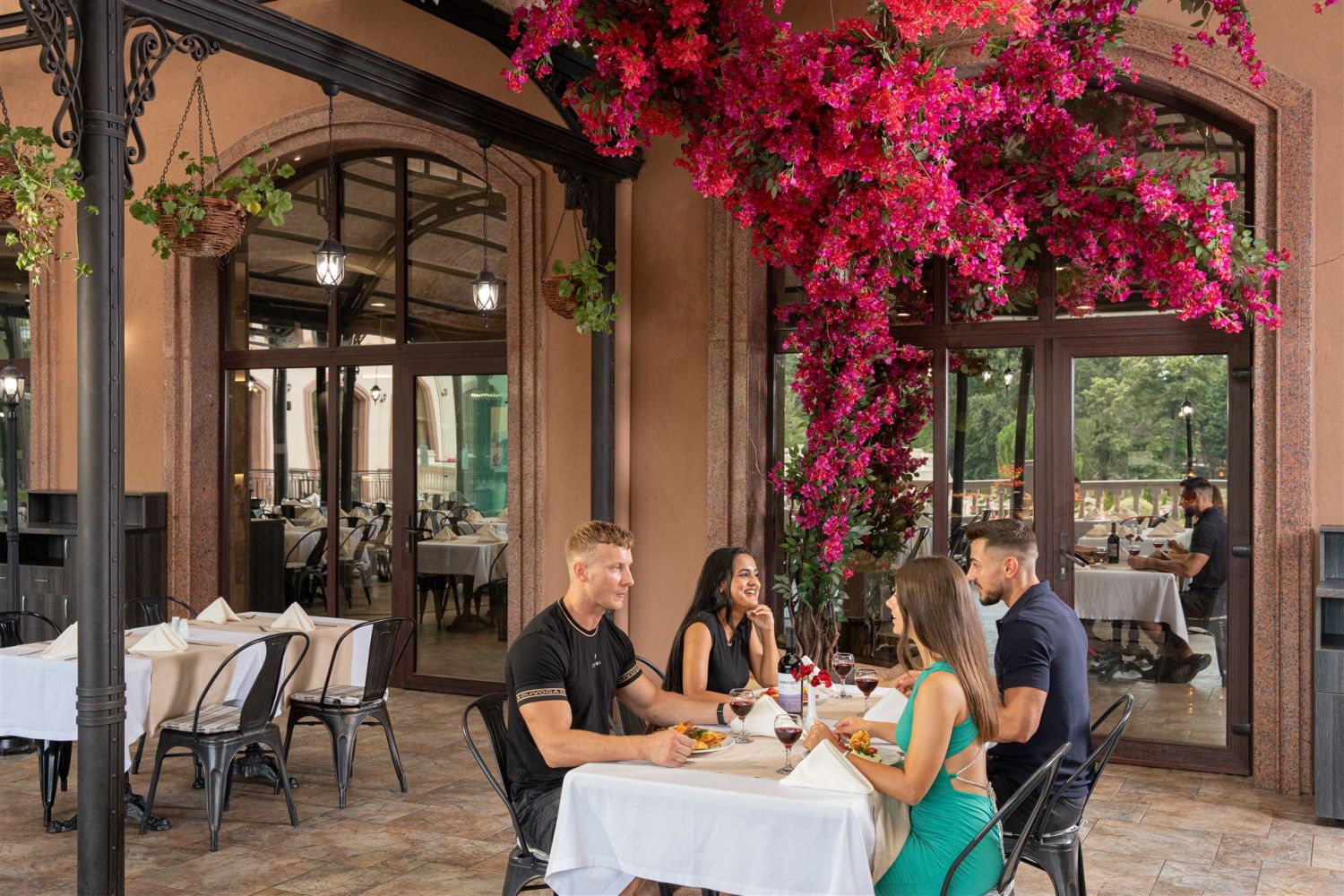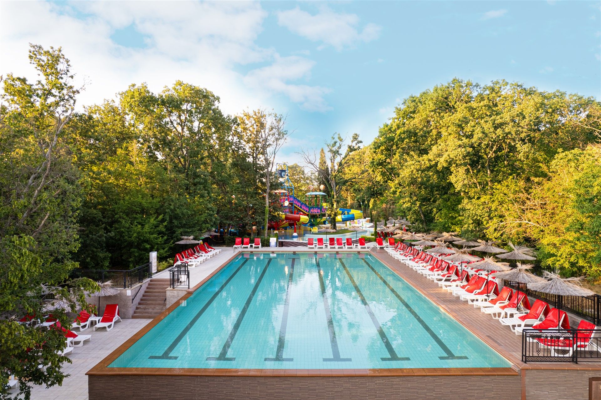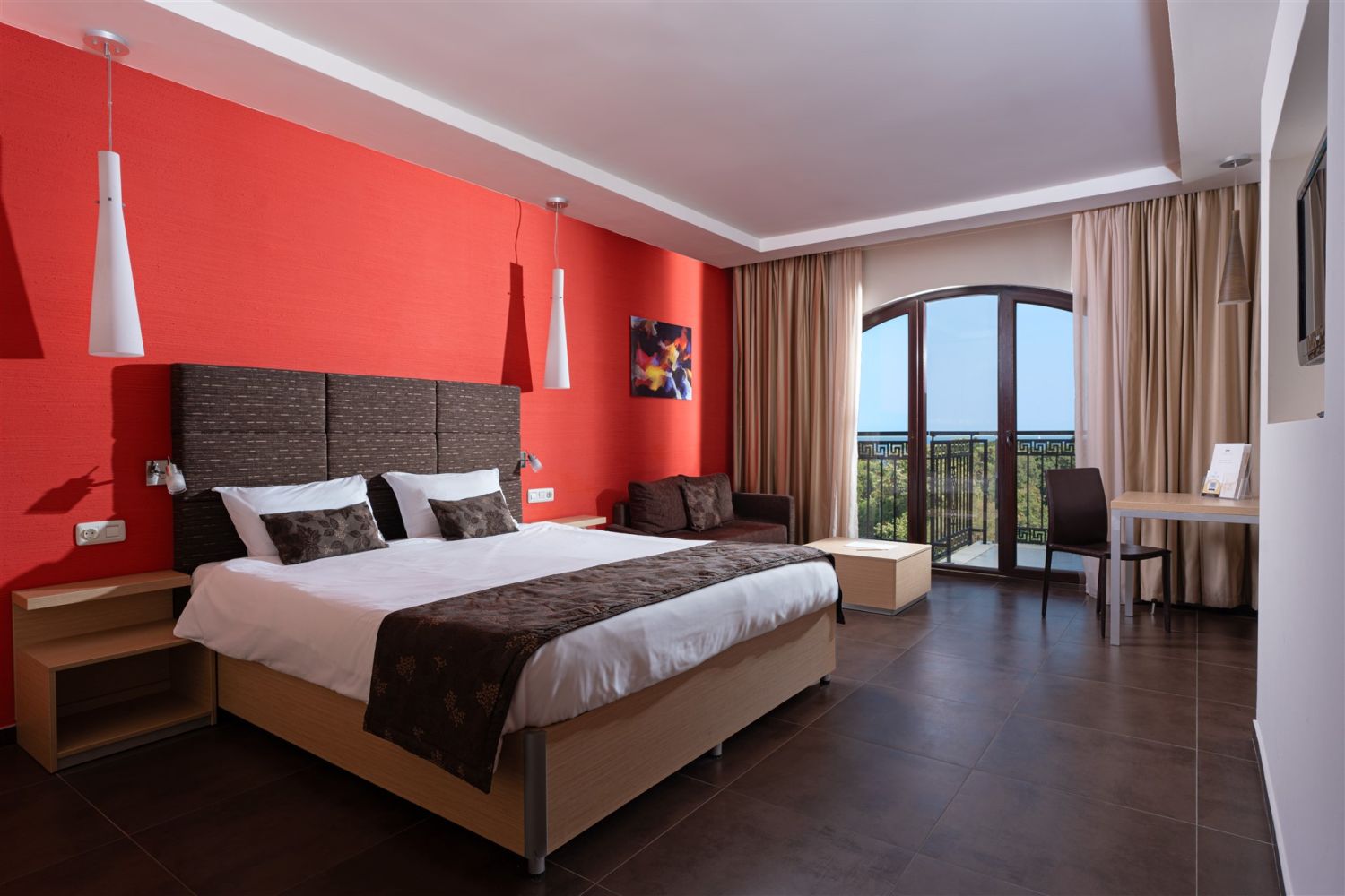 Храненето е на база All Inclusive, като гостите могат да се насладят на основен ресторант с бюфет и тематични вечери, както и на допълнителни ресторанти с българска и гръцка кухня. Комплексът предлага богата инфраструктура за забавление и отдих: открит и закрит басейн, мини аквапарк с няколко водни пързалки за деца, анимация през деня и вечерта, мини диско, детски клуб и площадка. За спортно активните гости има мини-футбол, волейбол, водна гимнастика, фитнес, тенис на маса и дартс. Хотелът разполага и с уелнес зона със сауна, парна баня, масажи и джакузи. Плажната зона, която обслужва гостите, предлага шезлонги и чадъри според наличностите, а разположението в спокойната част на курорта съчетава удобство и уединение. На разположение е и паркинг, обикновено срещу допълнително заплащане, а летище Варна се намира на около 21 км.