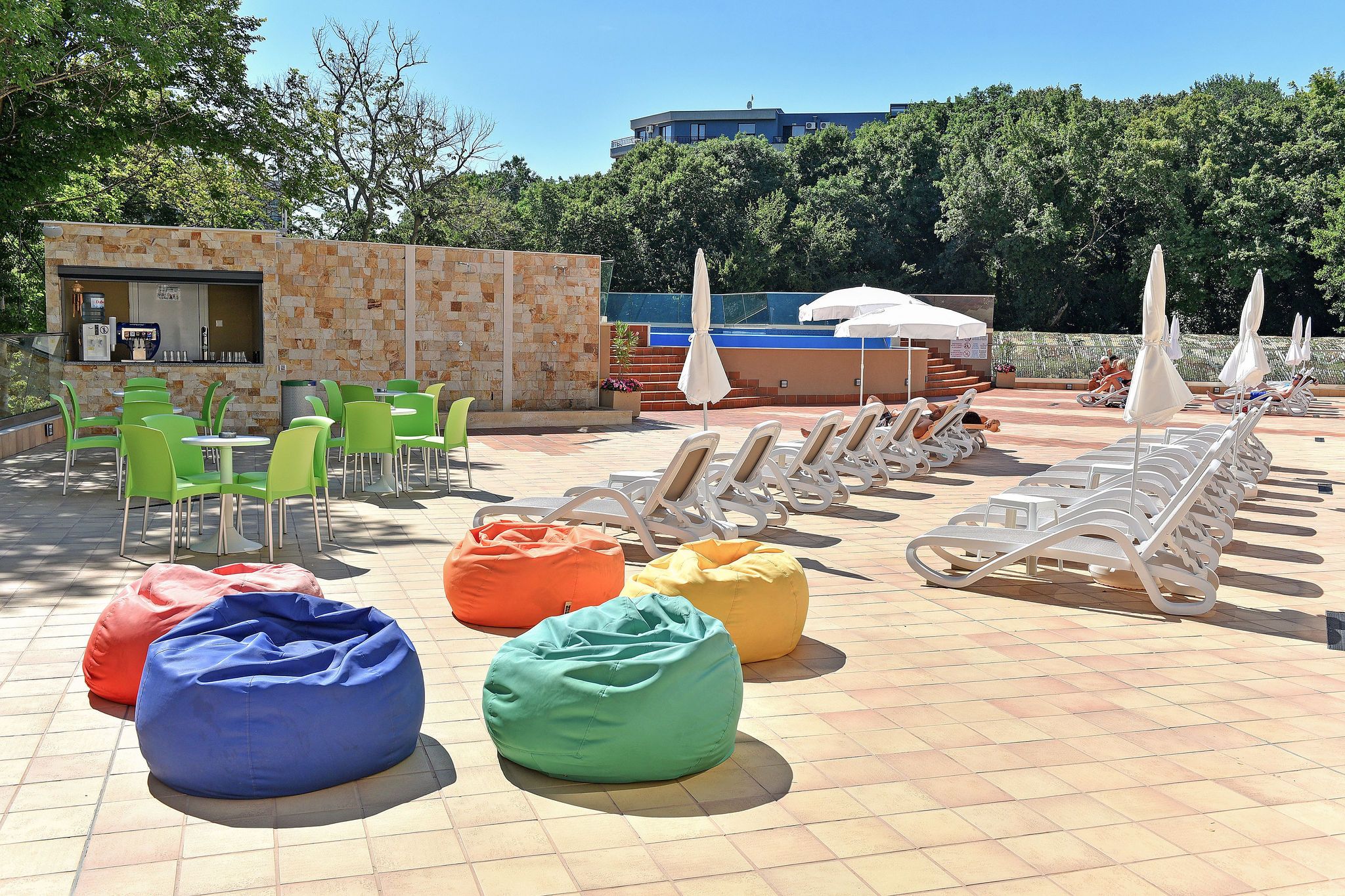На разположение са барове, които допринасят за приятното прекарване с освежаващи коктейли, кафе и безалкохолни напитки. Плажът е на разстояние, което позволява приятна разходка, а в определени часове се предлага и удобен трансфер, така че гостите да се насладят лесно на морето и пясъчната ивица.