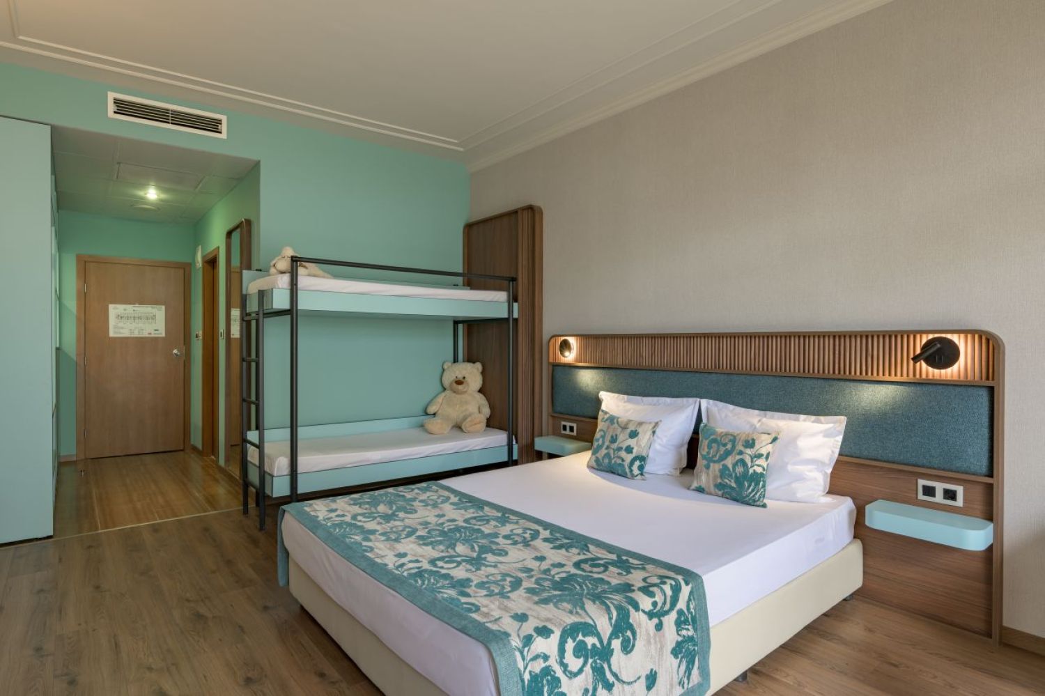Хотелът разполага с разнообразие от модерно обзаведени помещения – двойни, тройни и семейни стаи, както и по-просторни супериор и делукс варианти, подходящи както за двойки, така и за семейства с деца. Всички стаи са оборудвани с климатик, телевизор, Wi-Fi, мини хладилник, сейф, баня с душ и сешоар, както и балкон с кът за отдих.