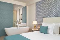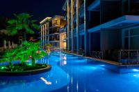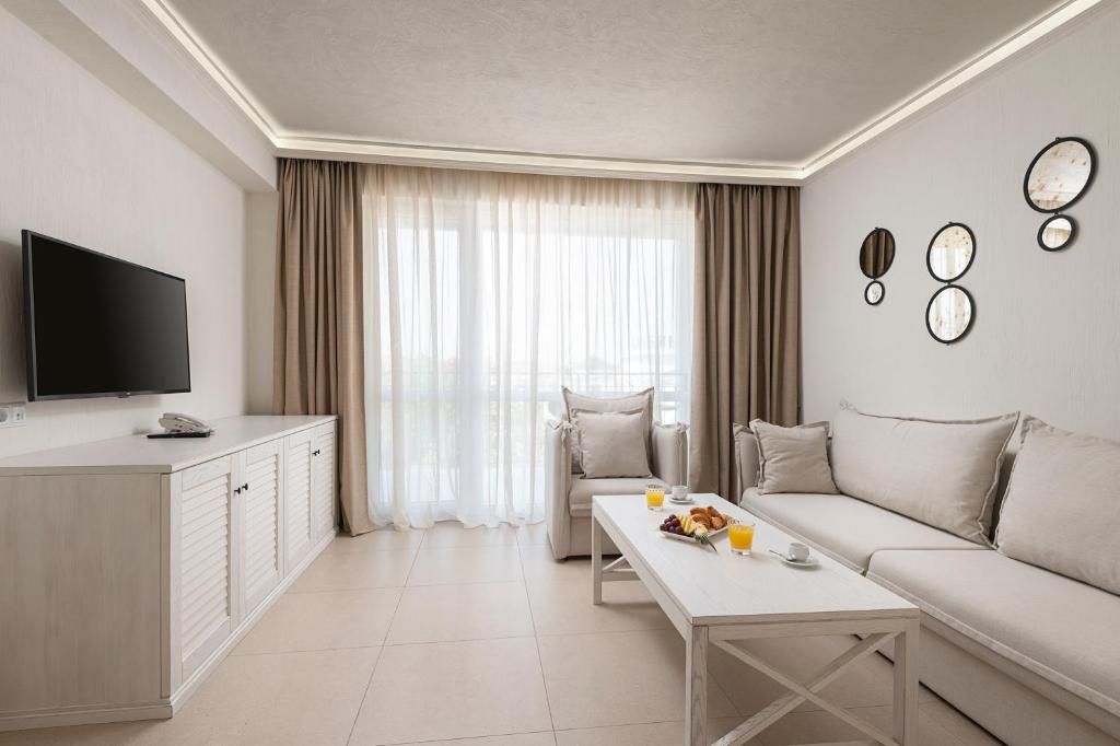Комплексът предлага елегантно обзаведени стаи и апартаменти, оборудвани с климатик, телевизор, минибар, удобни легла и балкон, като част от помещенията разполагат и с директен достъп до басейна или допълнителни удобства, подходящи за семейства. На разположение на гостите са просторен открит басейн с зона за отдих, модерен СПА център с джакузи, сауна и релакс услуги, както и добре оборудван фитнес.