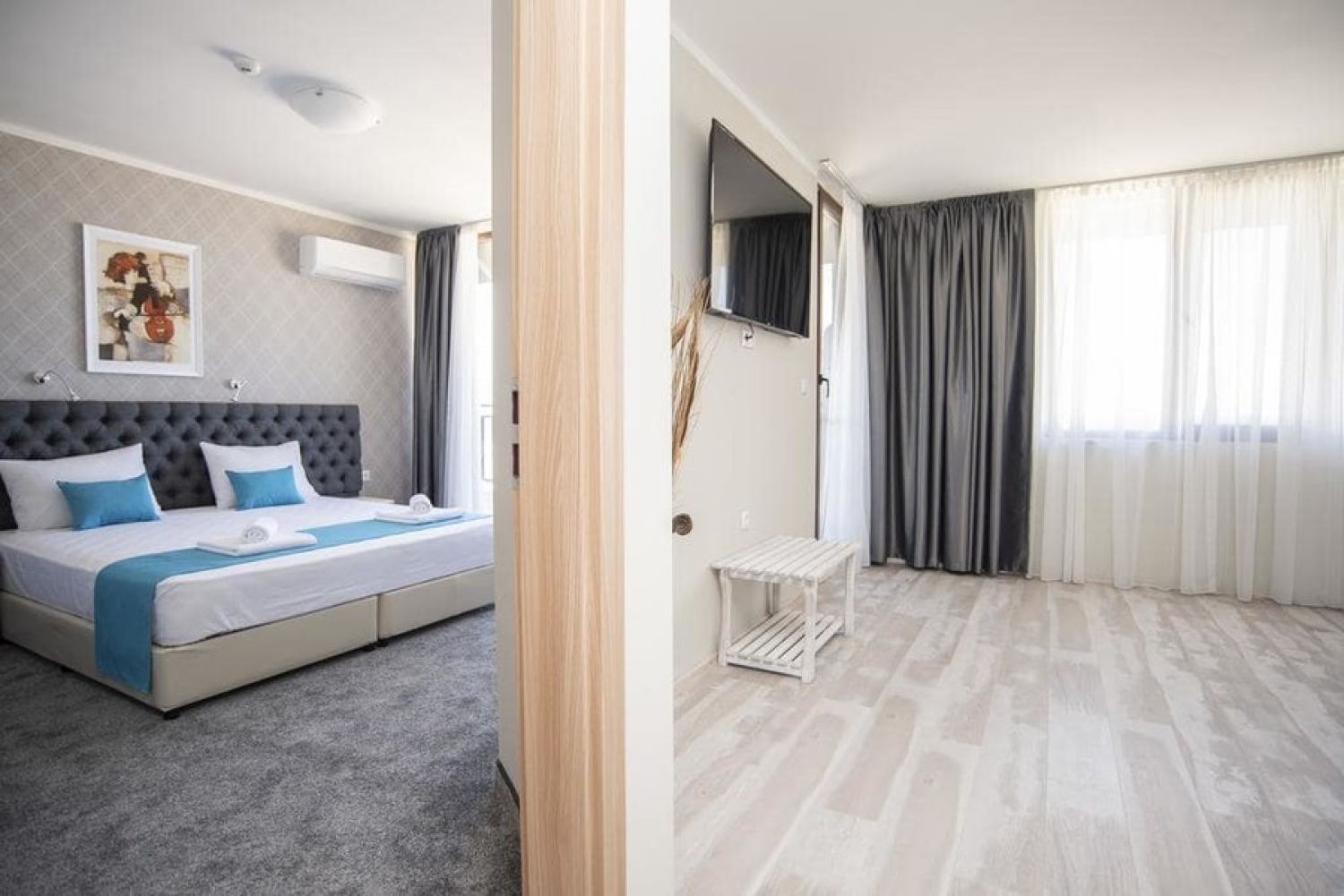 Хотелът е сравнително нов и се отличава с уютна, модерна визия и ограничен капацитет, което създава усещане за уединение и комфорт. Настаняването е в просторни и стилно обзаведени двойни стаи и апартаменти с една или две спални. Всички помещения разполагат с климатик, телевизор, минибар, безплатен Wi-Fi и тераса, като голяма част от тях предлагат странична или директна морска гледка.