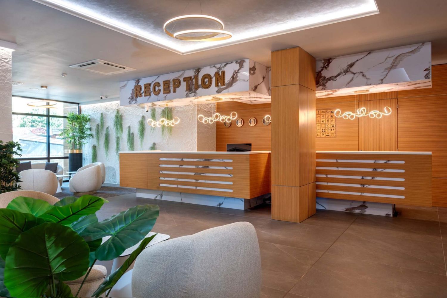 На разположение на гостите са 94 модерно обзаведени стаи и апартаменти, подходящи за семейства или по-големи компании. Всички помещения са оборудвани с централна климатизация, сателитна телевизия, телефон, минибар, сейф, Wi-Fi интернет и балкон. Интериорът е елегантен, а обзавеждането осигурява максимален комфорт по време на престоя.