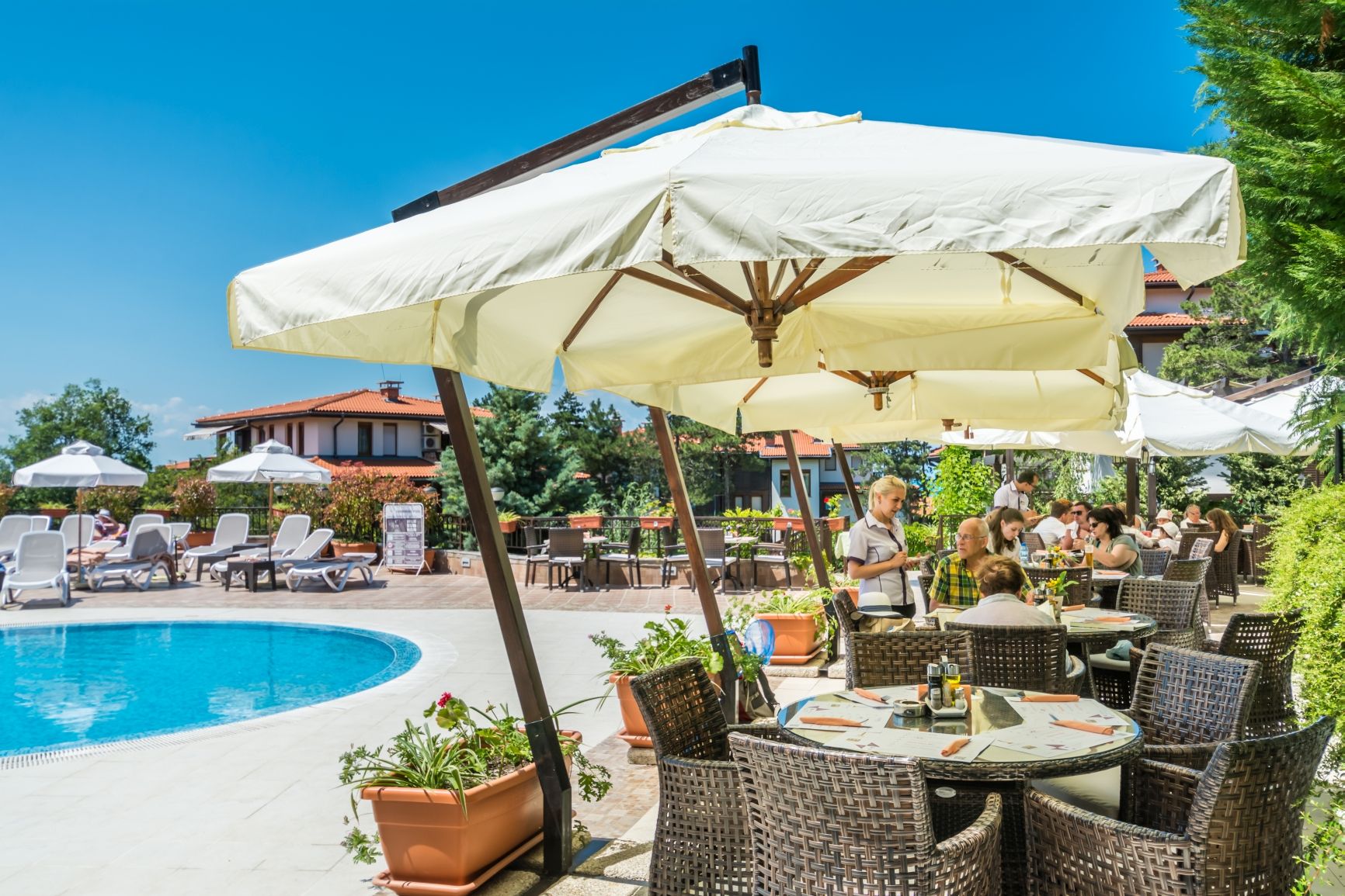 Непосредствено до басейни 1, 2 и 5 са разположени и допълнителни топли акватонични басейни с хидромасажни дюзи на открито (40 кв.м. всяко) с температура на водата от 34 градуса.