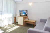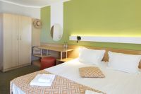 Хотелът е реновиран през 2018 г. и предлага модерна и комфортна база за настаняване. Разполага с общо 98 помещения, сред които стандартни и делукс двойни стаи, студиа и апартаменти. Всички са оборудвани с климатик, мини хладилник, кабелна телевизия, телефон, балкон и баня с душ. Апартаментите и студиата предлагат допълнително пространство и удобства като разтегателен диван и свързващи врати между стаите.