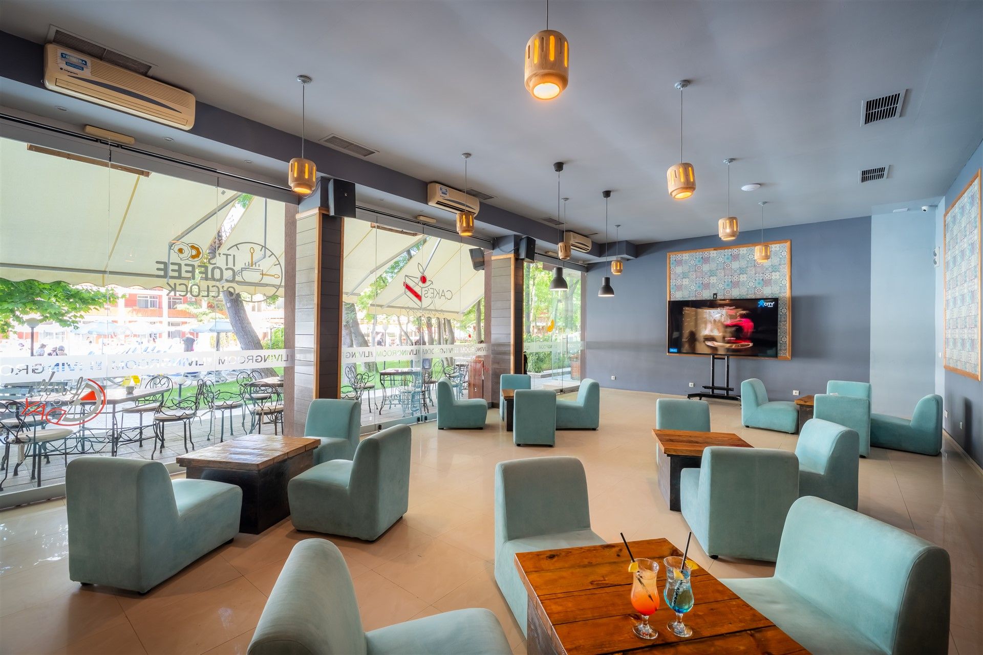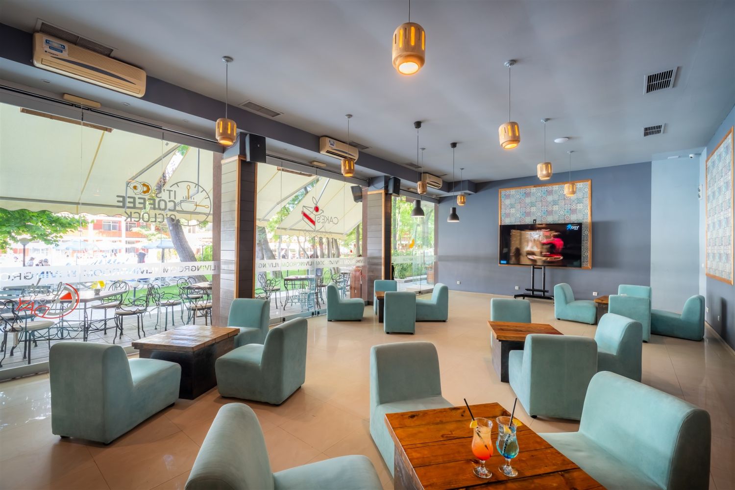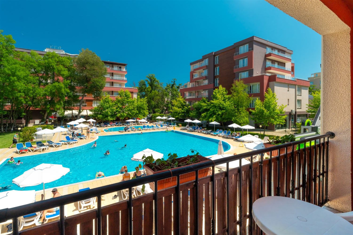 Комплексът разполага с просторен басейн с отделна зона за деца, анимационна програма, детски клуб и площадка, както и частна плажна зона с чадъри и шезлонги за гостите. Настаняването включва модерно обзаведени стандартни и фамилни стаи, климатизирани и оборудвани с всичко необходимо за приятен престой.