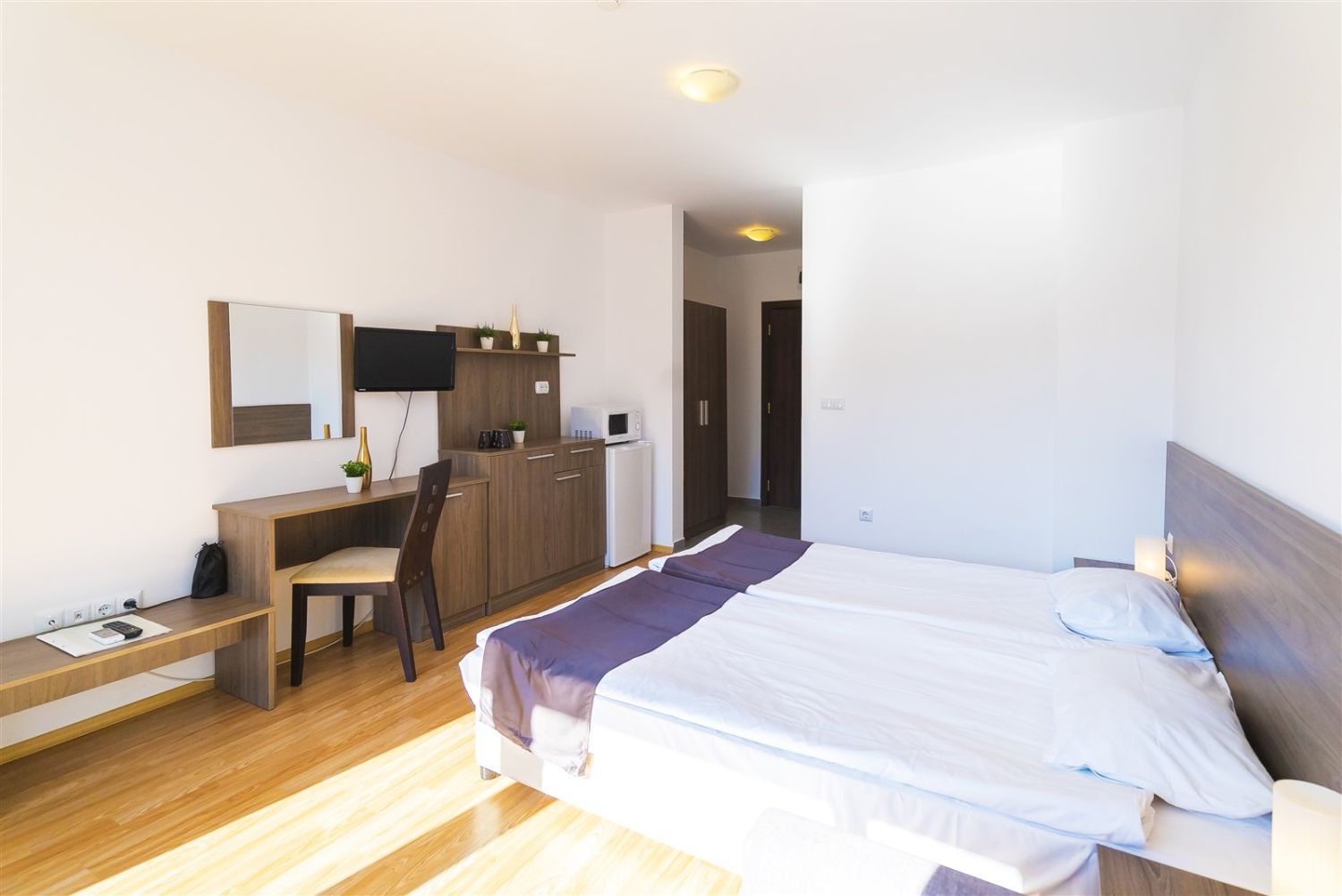 Комплексът предлага различни типове помещения – двойни стаи, студиа и апартаменти с една спалня, оборудвани с климатик, телевизор, баня и кухненски бокс в студиата и апартаментите, което е голямо предимство за семейства или гости, които предпочитат по-самостоятелен престой.