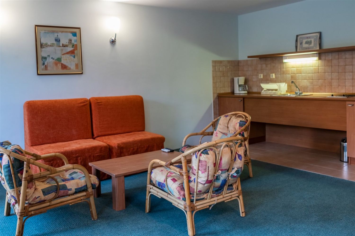 Хотелът предлага спокойна и непринудена атмосфера, подходяща както за семейни почивки, така и за двойки или компании приятели, които търсят удобство и добро местоположение. На разположение на гостите са комфортно обзаведени стаи, оборудвани с климатик, телевизор, мини хладилник, самостоятелна баня и балкон, създаващи добри условия за отдих през летния сезон. Хотелът разполага с просторен открит басейн с детска секция, водни пързалки и зона за релакс с шезлонги и чадъри, както и бар до басейна, предлагащ освежаващи напитки.