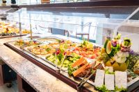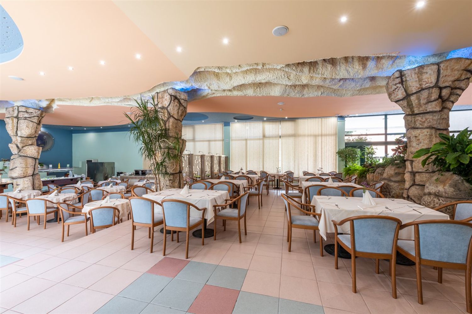 Ресторантът на хотела сервира разнообразни ястия в приятна обстановка, а зелените площи около него допринасят за усещането за комфорт и отмора.