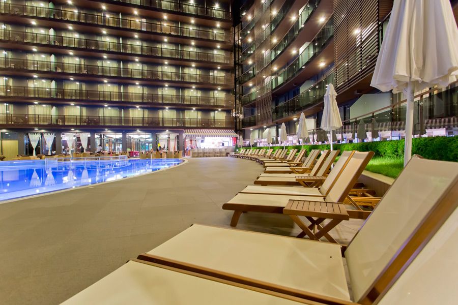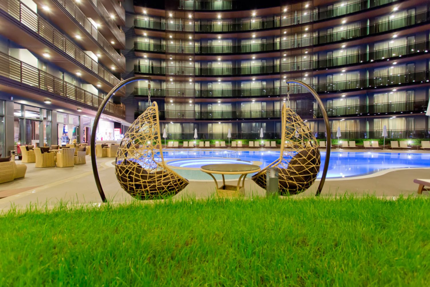 Galeon Residence & SPA е модерен ваканционен комплекс от висок клас, разположен в южната част на курорта Слънчев бряг, в непосредствена близост до плажа и популярната зона около Какао Бийч. Хотелът съчетава удобствата на апартаментен тип настаняване с услугите на луксозен СПА комплекс, което го прави отличен избор както за семейна почивка, така и за двойки или по-дълъг престой.