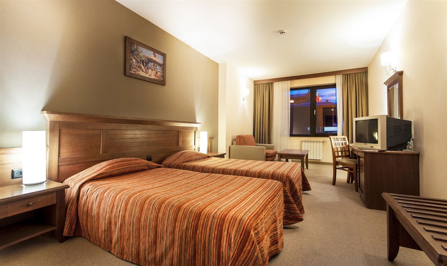 Хотелът разполага с близо 200 стилно обзаведени помещения, включващи двойни стаи, фамилни стаи и просторни апартаменти. Всички те са оборудвани с модерни удобства – телевизор, минибар, телефон, баня с вана, а част от стаите предлагат и балкон с изглед към планината или града. На разположение са и адаптирани стаи за гости с двигателни затруднения, което осигурява комфортен престой за всеки посетител.