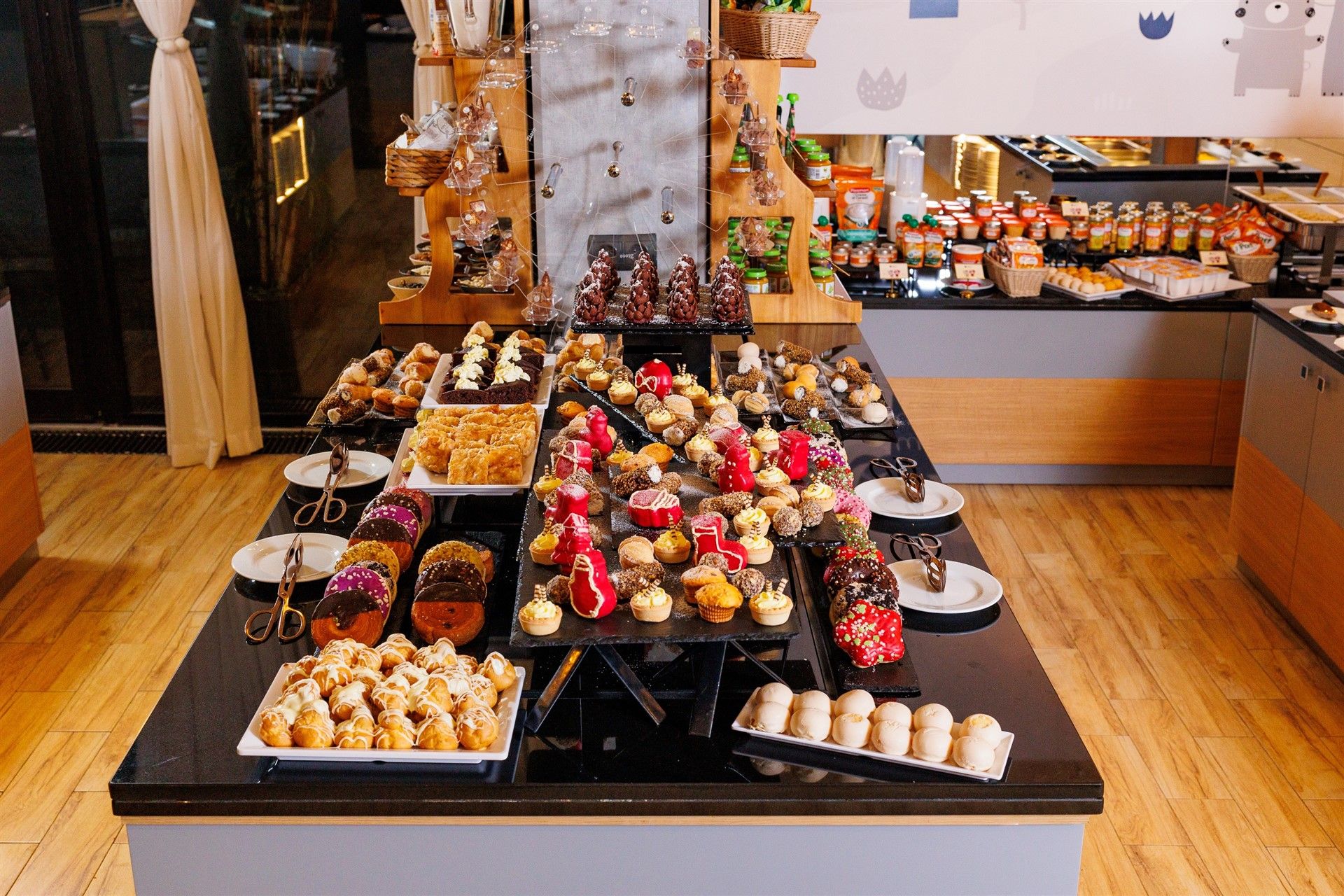 В комплекса функционират няколко ресторанта – основният ресторант „Le Bistro“, италианският „Leonardo“ с открита тераса и басейн, както и зимният гурме ресторант „Fondue“, вдъхновен от швейцарската кухня. Хотелът предлага и детски клубове, анимация и открита площадка, което го прави изключително подходящ за семейства с деца.