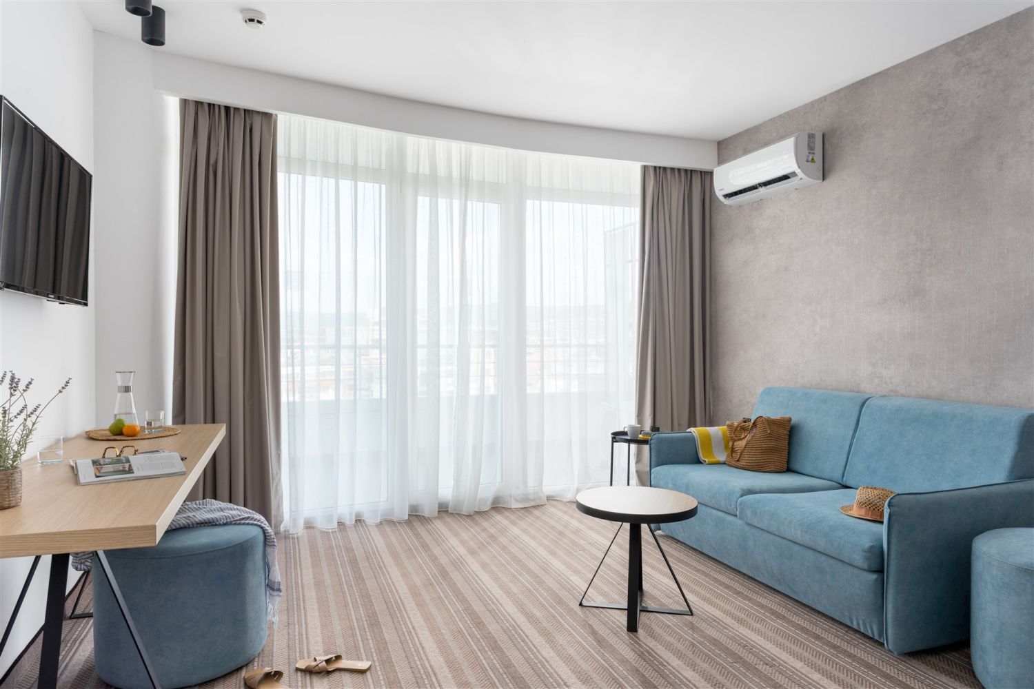 Хотел TUI Suneo Perla в Слънчев бряг е напълно реновиран модерен комплекс, разположен в тиха част на курорта, но на пешеходно разстояние от плажа и централните зони. Хотелът предлага стилна и свежа атмосфера, характерна за концепцията SUNEO – комбинация от удобства, добра храна и непретенциозен, приятелски настроен сервиз. Настаняването е в комфортни, съвременно обзаведени стаи с климатик, телевизор, безплатен Wi-Fi, балкон и модерна баня, като интериорът е светъл и уютен след последната реновация. TUI Suneo Perla разполага с открит басейн с тераса и шезлонги, както и с отделена зона за релакс около него, което го прави подходящ за спокойна почивка. Ресторантът предлага изхранване на база All Inclusive, включващо разнообразие от международни и български ястия, тематични вечери и леки закуски през деня, а барът сервира коктейли и напитки в непринудена, приятна обстановка.