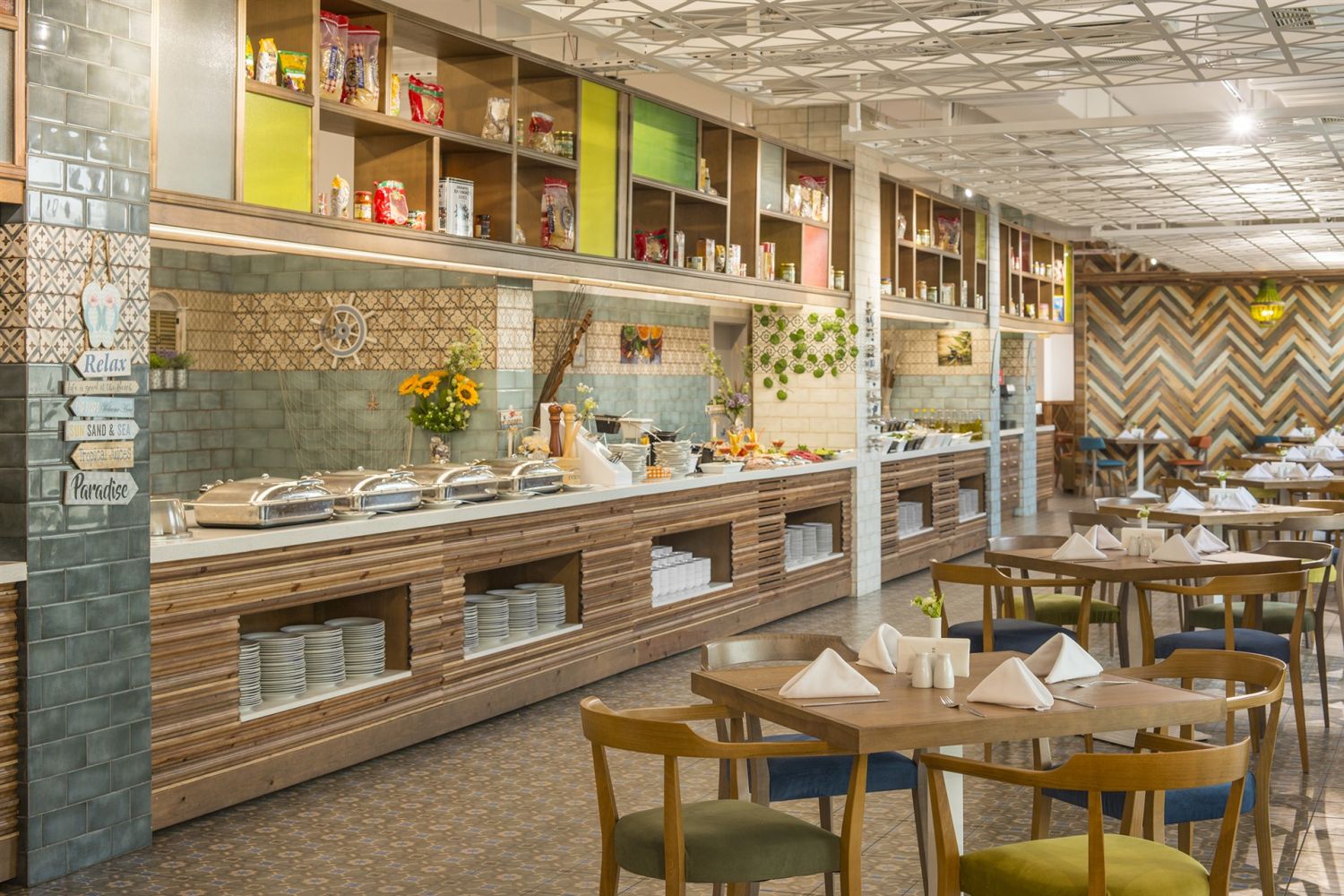 Концепцията е All Inclusive, като на гостите се предлагат разнообразни кулинарни изкушения в основния ресторант с международна кухня, бар край басейна със закуски и напитки през деня, както и лоби бар с приятна атмосфера. На територията на комплекса има два открити басейна, включително детски с пързалки, а на плажа са осигурени безплатни шезлонги, чадъри и плажни кърпи.