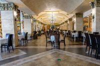 Красиви сводове, впечатляващи мраморни колони със златни орнаменти и стенни лампи в обков от ковано желязо, високи тавани с кристални полилеи, невероятни витражи и изящни картини създават усещане за блясък и величие. Ресторантът е разделен на няколко секции, като всяка от тях има свой автентичен дух и очарование, с мебели в тигрови шарки или класически дизайн в меки елегантни цветове.