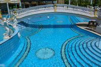 Многобройни басейни, парна и турска баня, сауна и джакузи, грижливо подбран избор от масажи и терапии за красота и здраве, платен паркинг, детски кът и целодневна програма от безброй забавления.