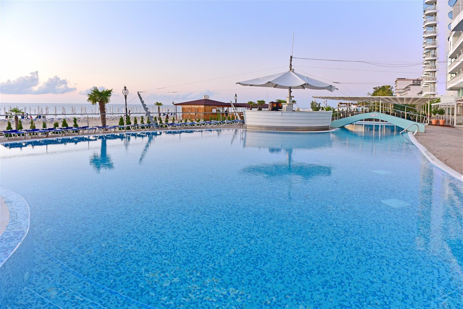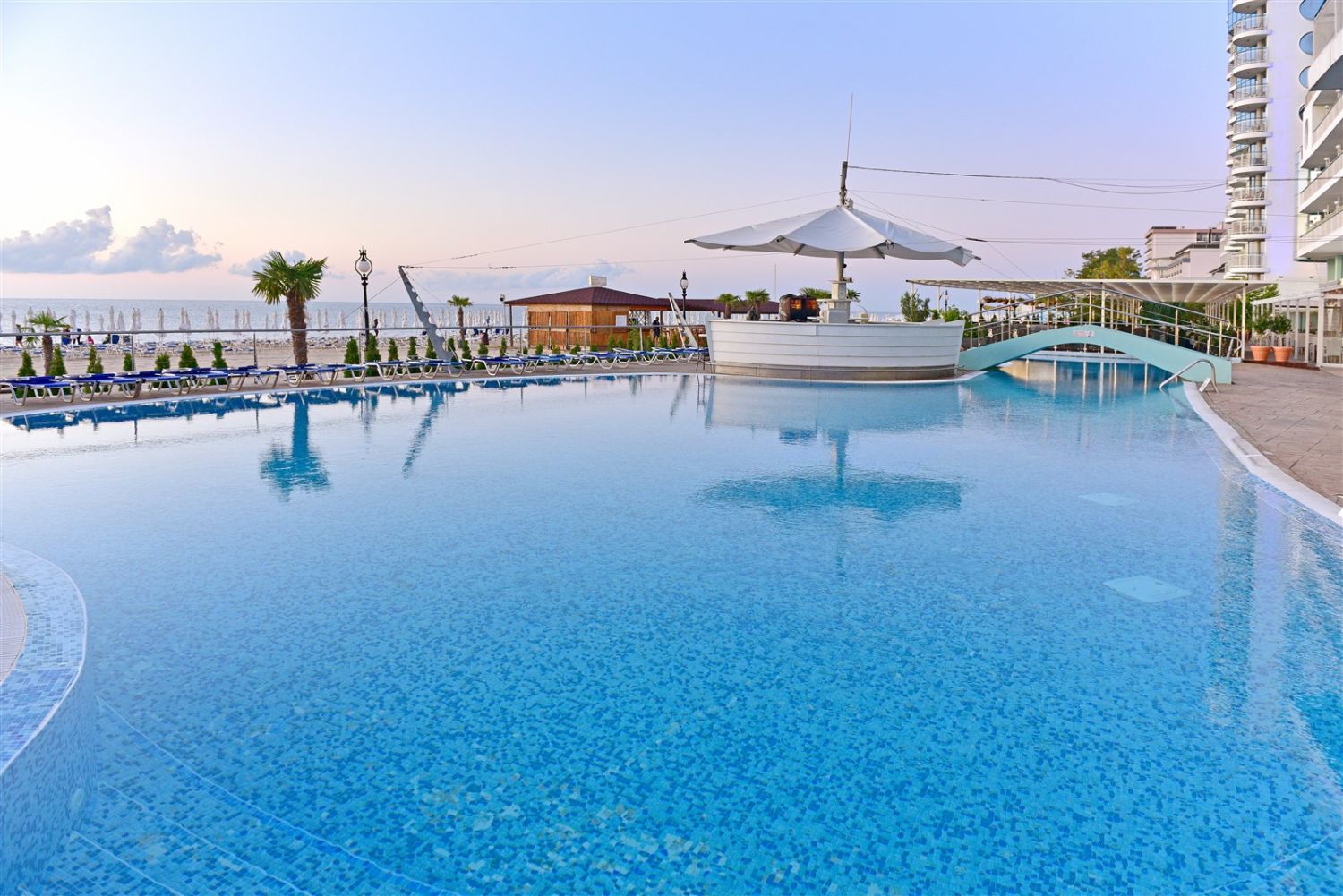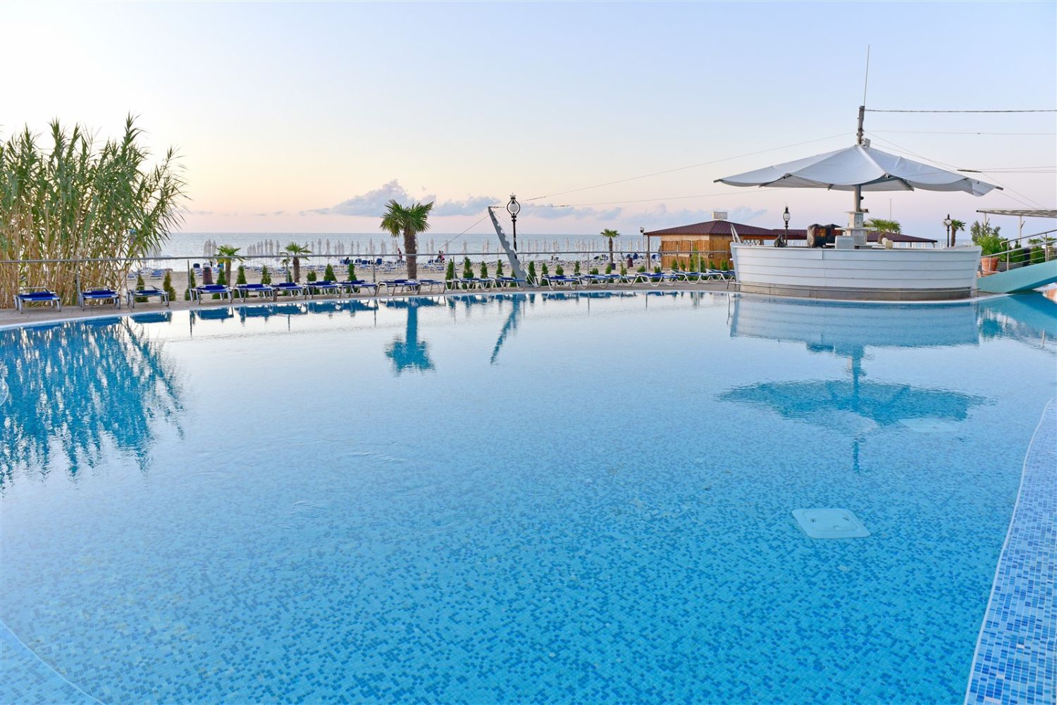 За свободното време хотелът предлага открит басейн, собствен плаж с включени чадър и шезлонги (според наличността), анимационна програма, спортни активности и детски кът, което го прави подходящ избор както за семейна почивка, така и за спокойна морска ваканция. Допълнително на разположение са услуги като сауна, масажи, медицински кабинет и различни развлечения.