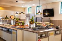 Берлин Голдън Бийч работи на база All Inclusive, като на разположение на гостите са основен ресторант с разнообразна българска и международна кухня на шведска маса, както и а-ла-карт заведения и барове. Концепцията включва закуска, обяд и вечеря, както и напитки и междинни хранения през деня.