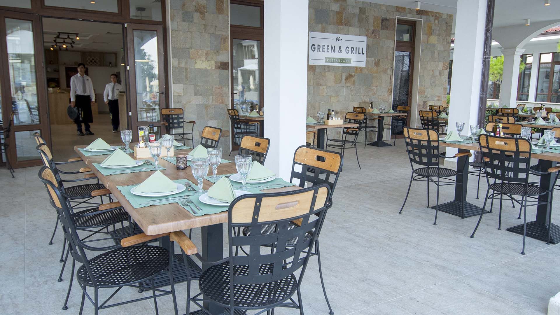 - В ресторанта се предлага богата закуска, здравословен обяд и разнобразна вечеря, сервирани на блок маса. Отделните секции на бюфета предлагат богат избор за всеки вкус и специфични нужди - здравословно хранене, станции за атрактивно приготвяне на храната на живо пред гостите, бюфет за най-малките ни гости, сладки изкушения собствено производство.