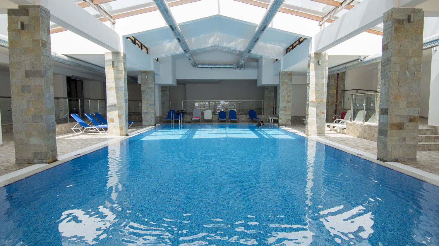 Хотелът предлага просторни стаи, апартаменти и фамилни помещения с климатик, балкон и безплатен Wi‑Fi, а All Inclusive пакетът включва основна храна, барове, снек-бари и напитки. Комплексът разполага със собствена частна плажна зона с чадъри и шезлонги, външни басейни, джакузи и вътрешен басейн, а за любителите на водните приключения има голям аквапарк с пързалки за различни възрасти, воден замък за деца, Lazy River и водни ефекти.