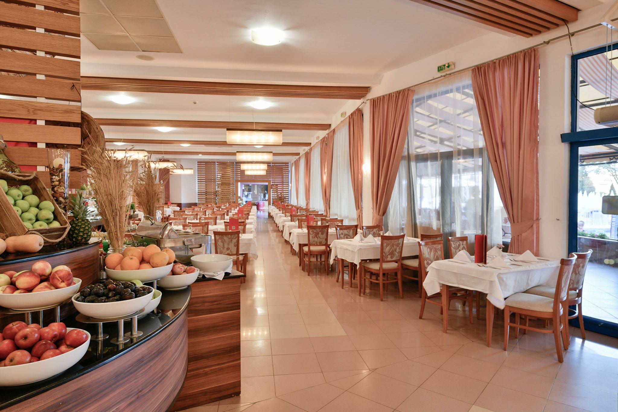 Основният ресторант предлага бюфет с интернационална кухня и разнообразни предложения за закуска, обяд и вечеря, като често се организират тематични вечери. Освен това гостите могат да се възползват и от а-ла-карт ресторанти с различни кухни, както и от снак опции между основните хранения. На територията на комплекса има барове, включително лоби бар и бар край басейна, където се предлагат безалкохолни и алкохолни напитки, коктейли и освежаващи предложения, подходящи за летните дни.